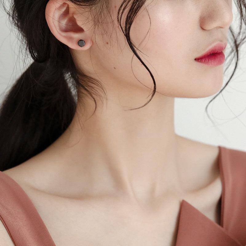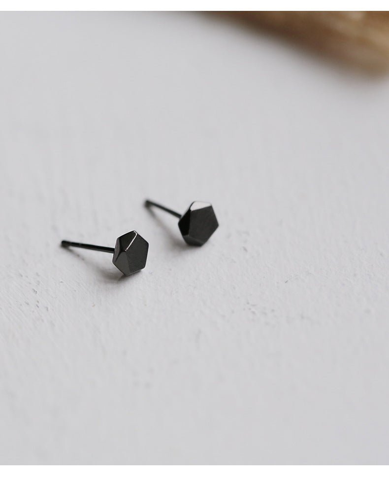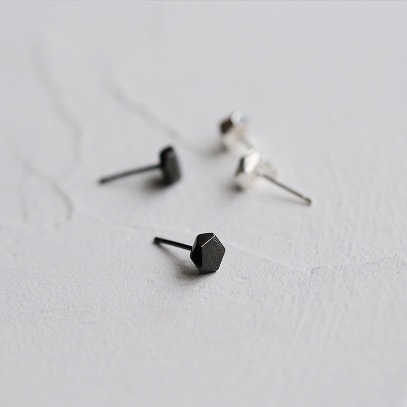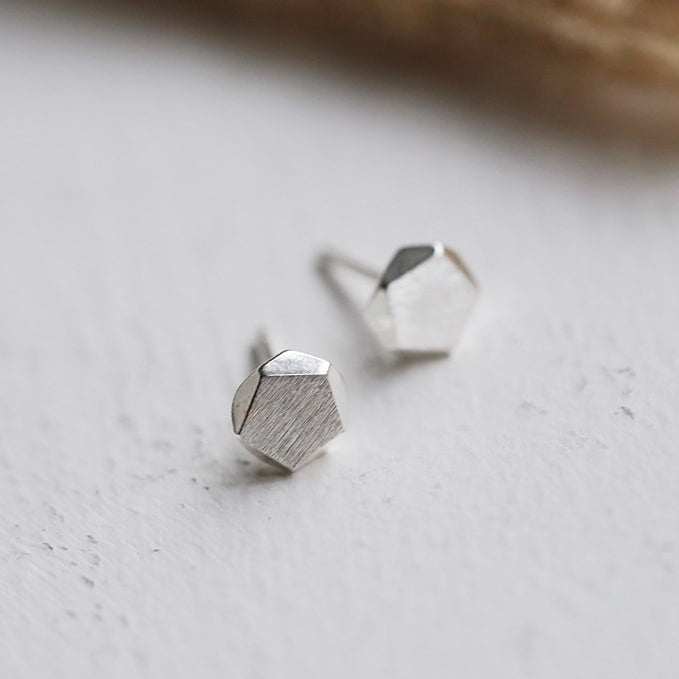 Polygonal Design Brushed Silver Studs Earrings for Women