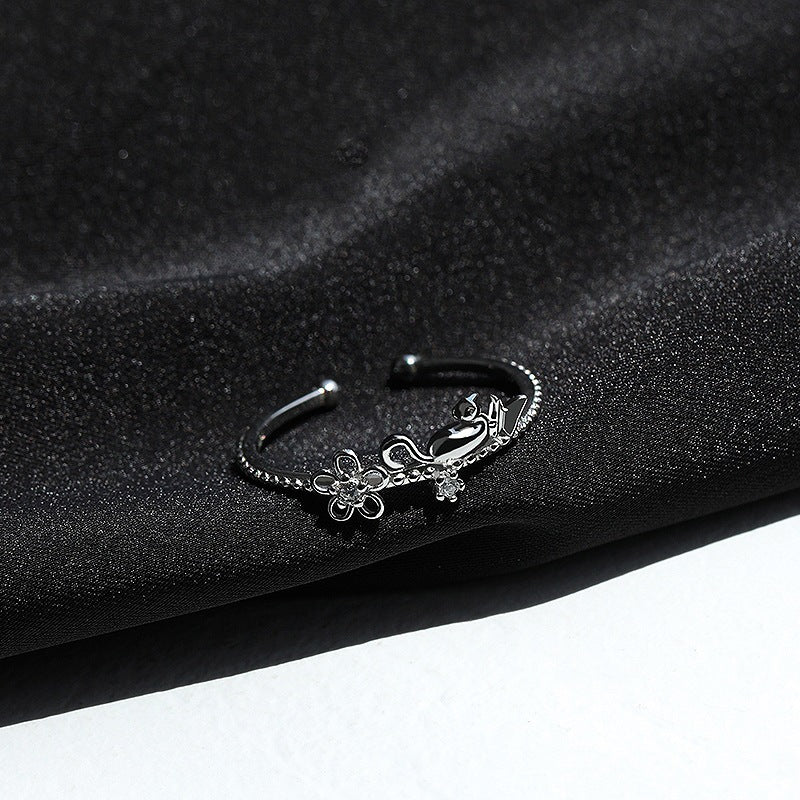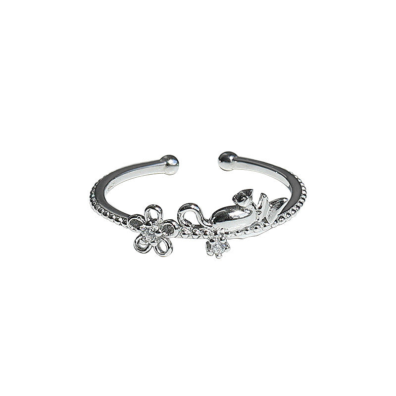 Add a little flair to your outfit with this adjustable Flower Kitten Silver Ring. Featuring an adjustable opening and a beautiful flower with a small kitten, this ring is perfect for any occasion. Crafted with sterling silver ensures durability and comfort.