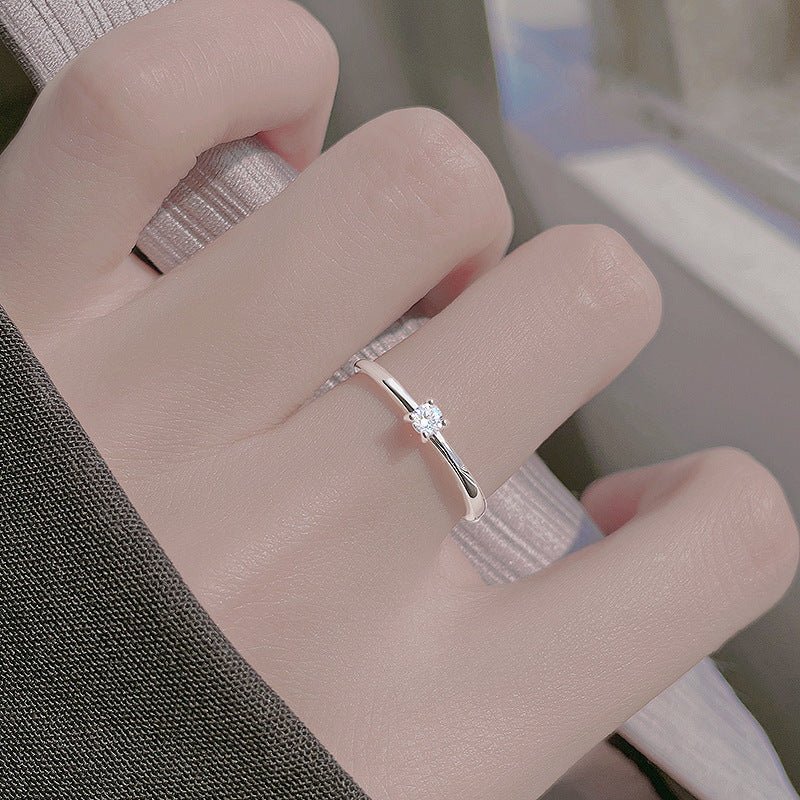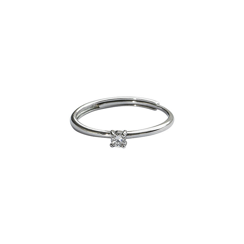 Four Prongs Zircon Solitaire Silver Ring for Women