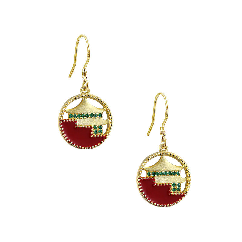 Add an elegant, sophisticated touch to any look with this Palace Museum inspired circle drop earrings. Crafted in sterling silver and punctuated with exquisite green zircons,  lending an air of timeless luxury to any ensemble.