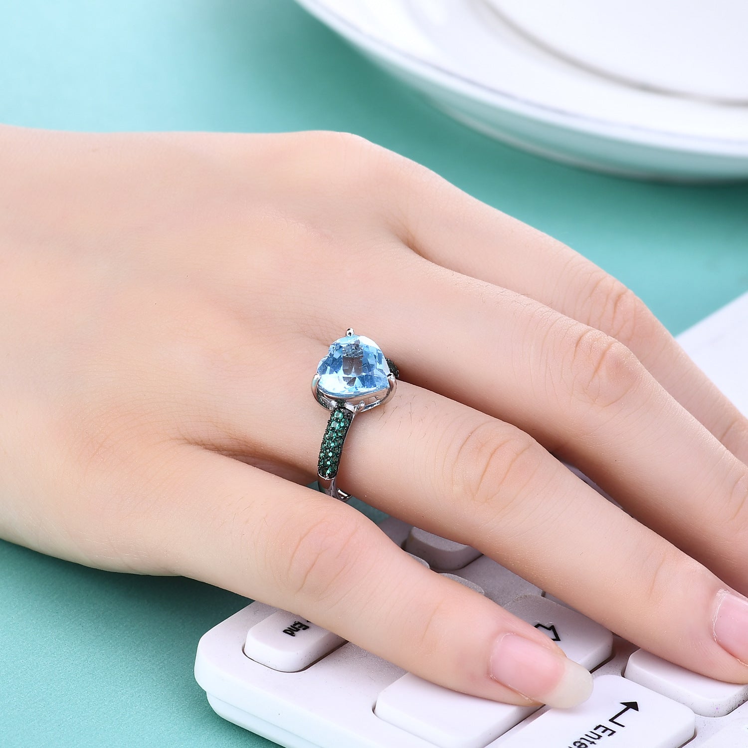 This beautiful sterling silver ring for women features a heart shape natural colourful gemstone and small green zircons decorating the ring arm. With it's unique and romantic thorn bud design and perfect size, it makes the perfect gift for your special someone.