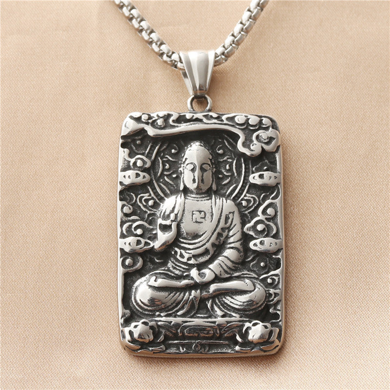 Elevate your style with our Titanium Steel Amitabha Pendant, a perfect blend of retro aesthetics and modern punk fashion. Designed for the contemporary man, this necklace serves as more than just an accessory; it's a statement of individuality.