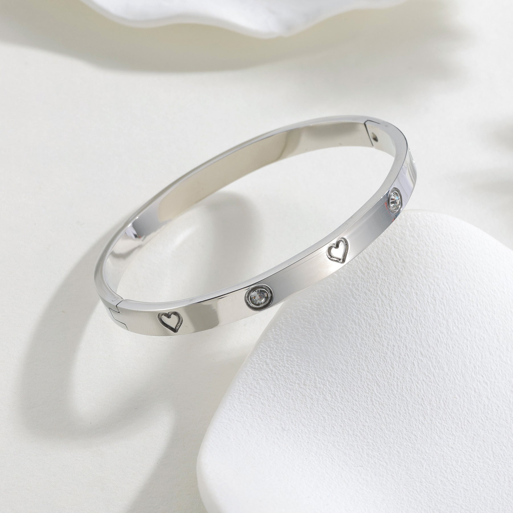 This bracelet pairs a sleek, minimalist silhouette with a dazzling zircon centerpiece, ensuring it effortlessly elevates both casual and formal looks. Its durable steel construction and enduring gold plating are crafted to keep the shine brilliant over time, making it a versatile staple for your jewelry collection.