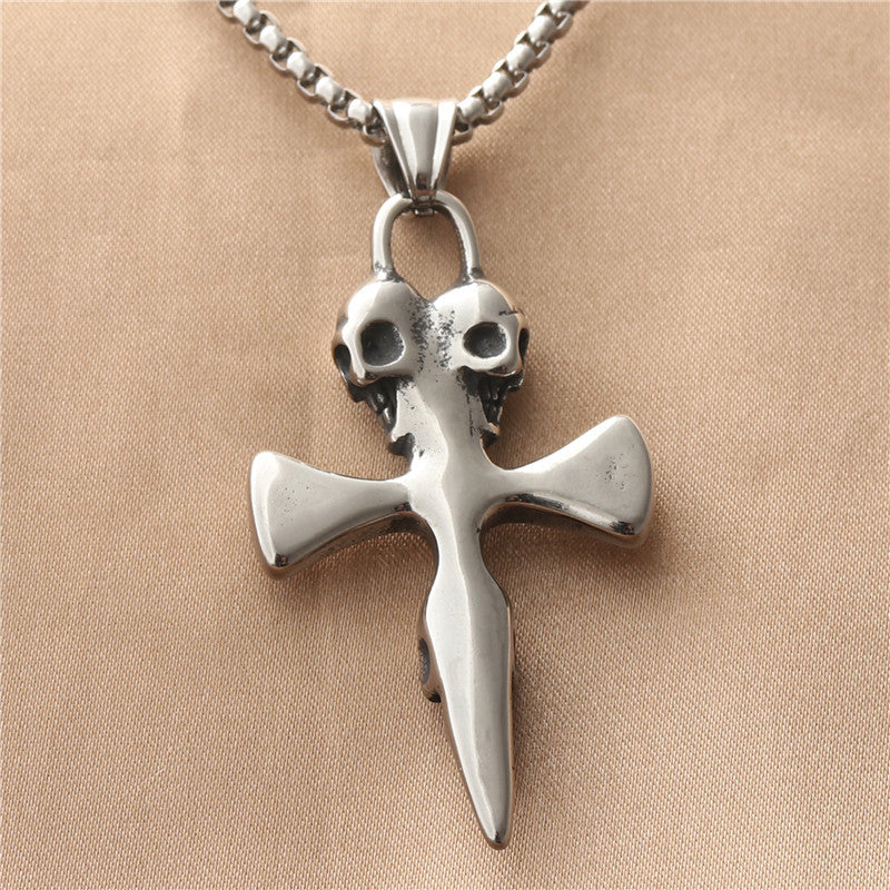 Personalized Retro Titanium Steel Cross Pendant Necklace for Men with Ghost Head Design