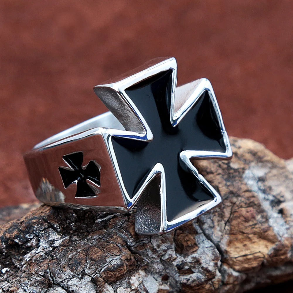 Introducing the Planderful Titanium Steel German Iron Cross Ring—a bold, retro-inspired piece designed for men who value durable, statement jewelry. Crafted from titanium steel with an epoxy inlay, it showcases a distinctive German Iron Cross motif that elevates any look.