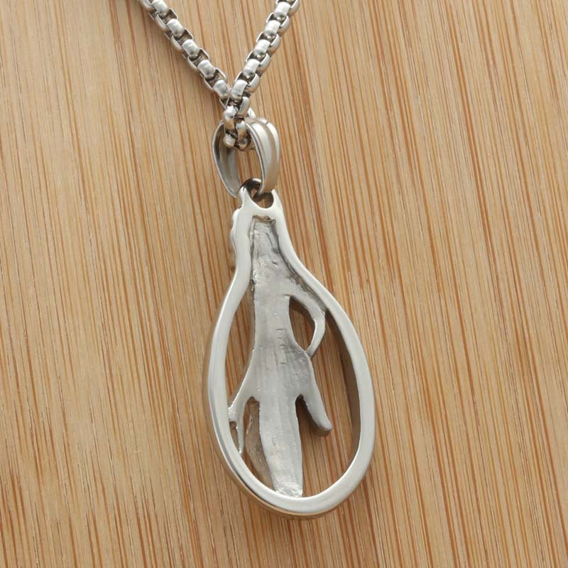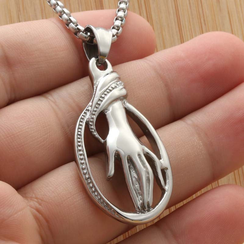 Whether you're a dancer, an artist, or someone who simply loves unique jewelry, the Titanium Steel Hand Pendant is the perfect accessory to express your passion and personality. With its retro charm and trendy design, you are sure to turn heads and make a statement.