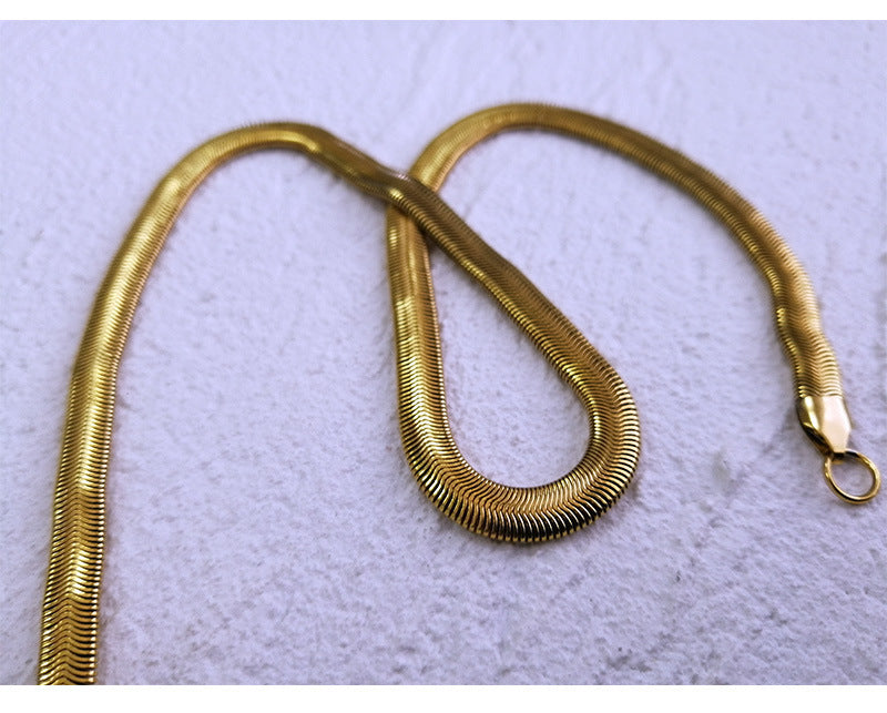 Introducing the exquisite Titanium steel men's necklace with chain snake bone collarbone, electroplated gold, European and American style necklace with chain for men. This striking piece of jewelry is designed for the modern man who appreciates both style and durability. Made from premium titanium steel, this necklace boasts a unique snake bone design that adds an artistic flair while ensuring long-lasting wear.