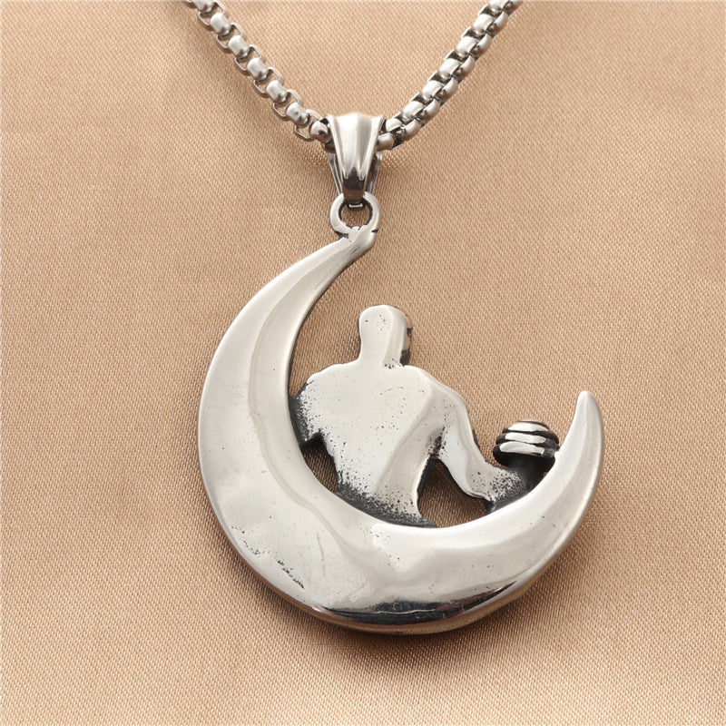 Titanium Steel Weightlifting Dumbbell Necklace - Retro Punk Stainless Steel Pendant for Men's Fitness Fashion