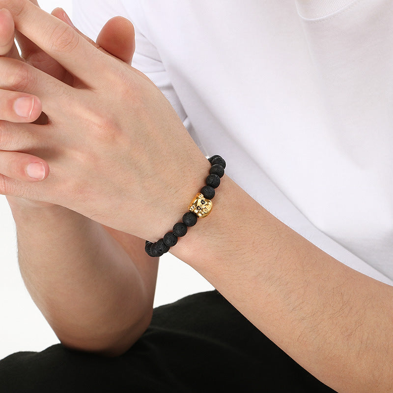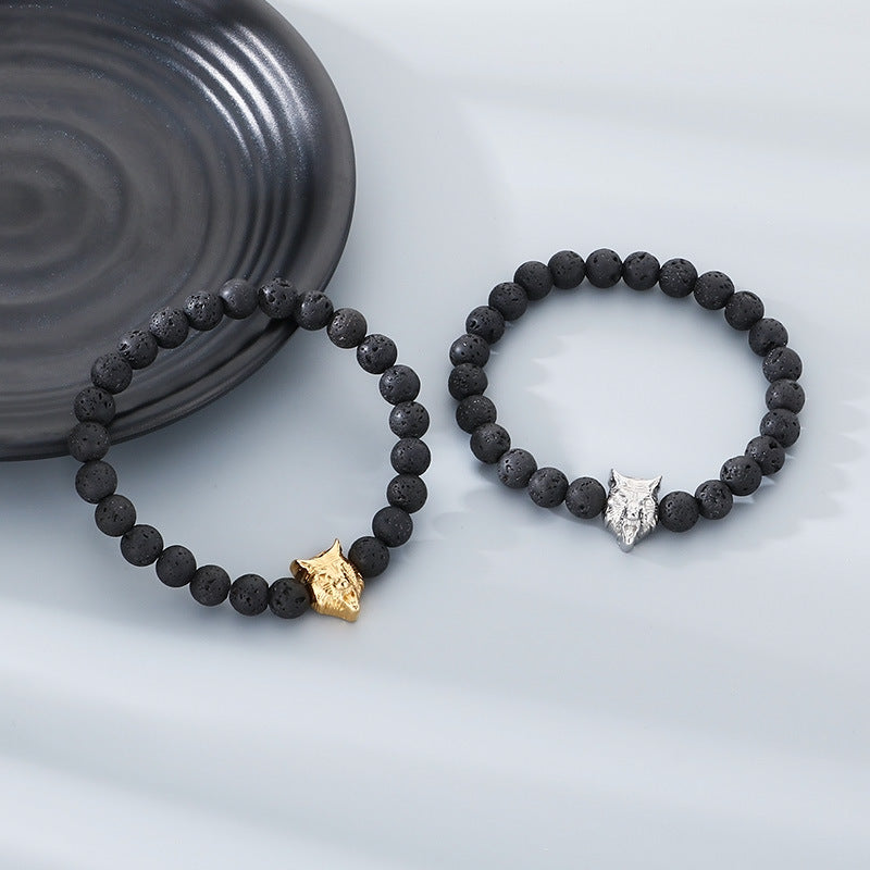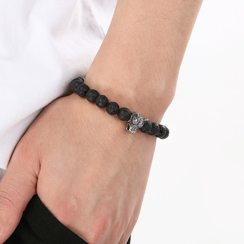 Planderful Lava Stone Beaded Bracelet For Men Animal Head