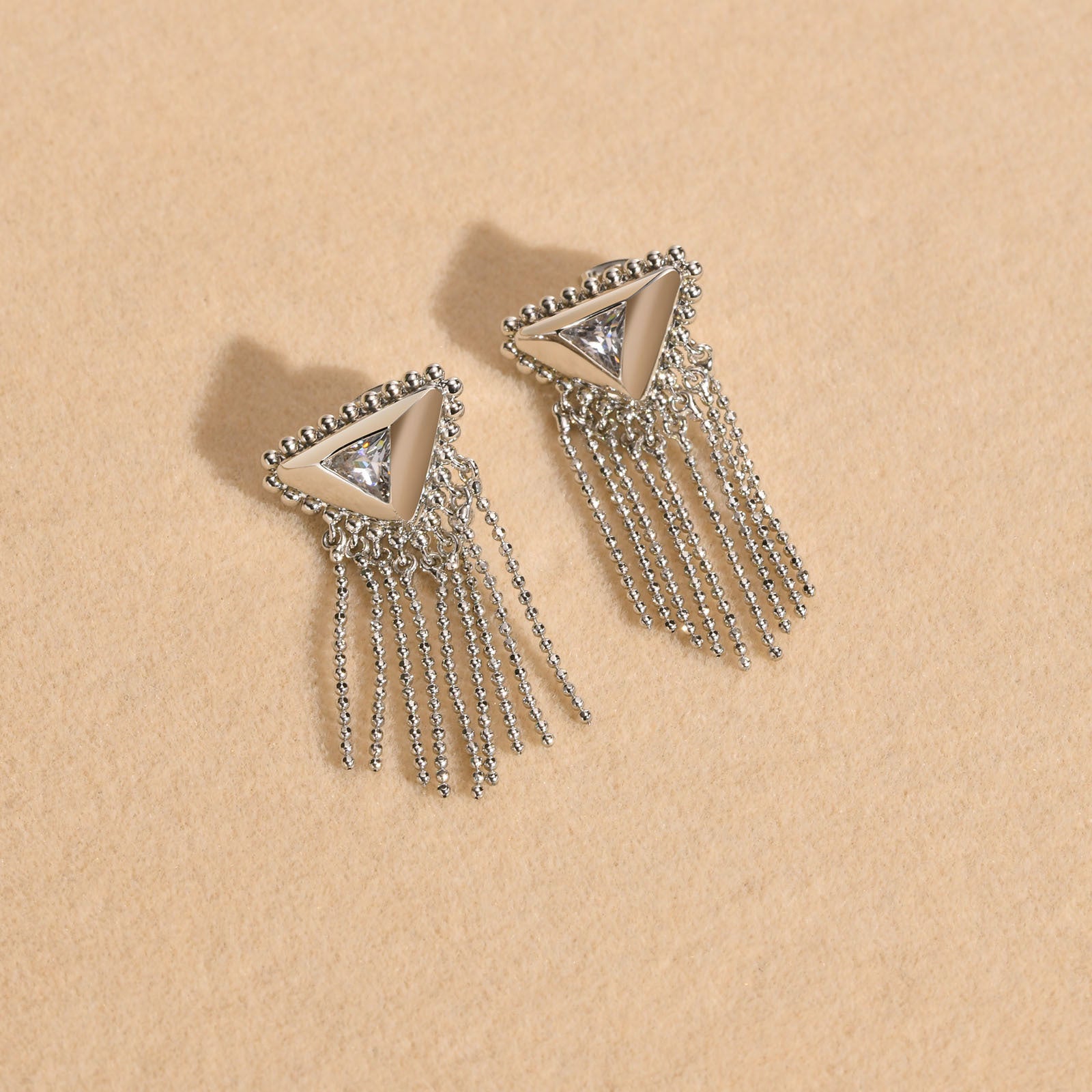 These earrings are not just accessories; they are versatile pieces that can transform any outfit. Pair them with a casual tee and jeans for a laid-back look, or wear them with a little black dress for an alluring evening outfit. The triangular tassel silver earrings complement a variety of styles and occasions.