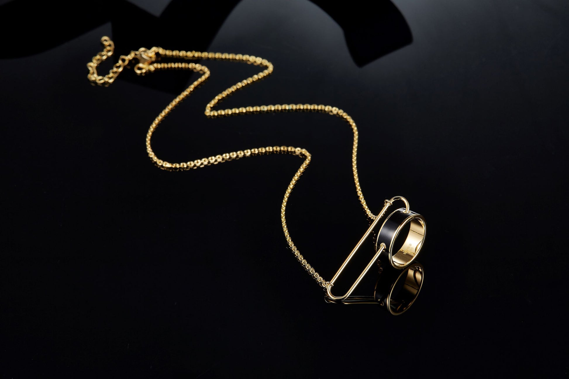 Metal Circle Black Enamel Necklace