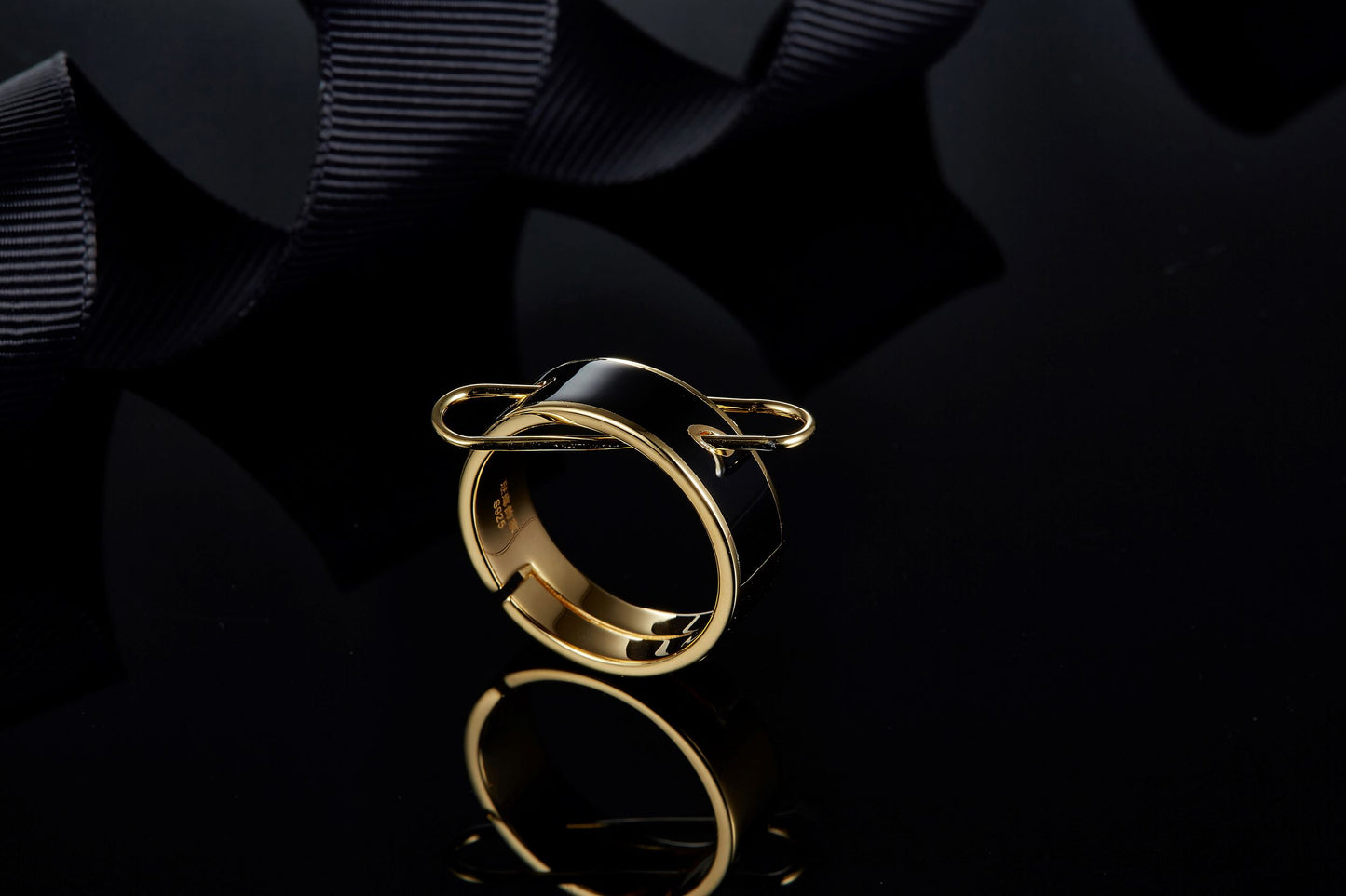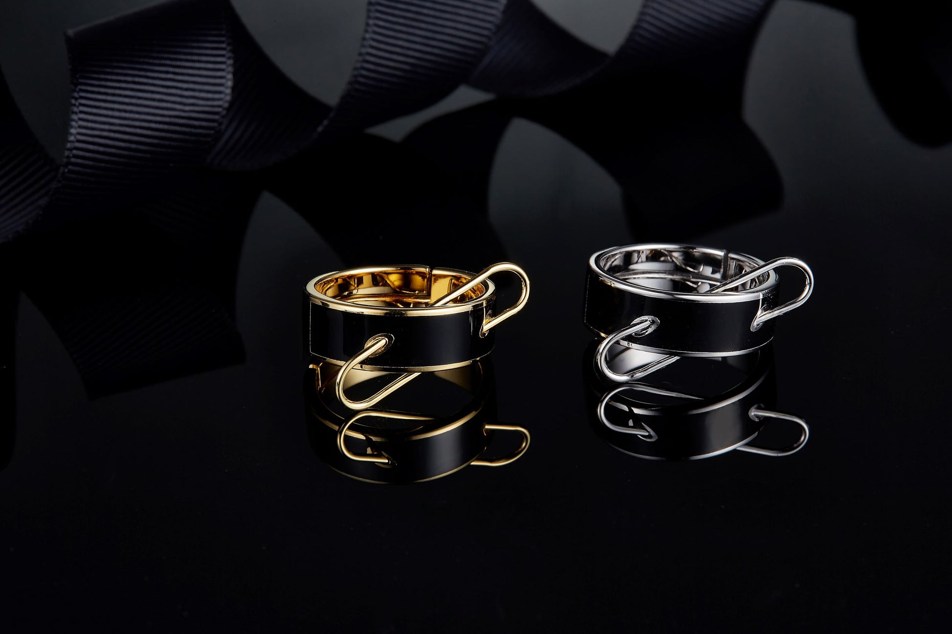 This Metal Circle Black Enamel Ring features a stunning two-colored design that is sure to make an impression. Its metal construction ensures durability and style. Wear this eye-catching accessory to add a touch of elegance to any look.
