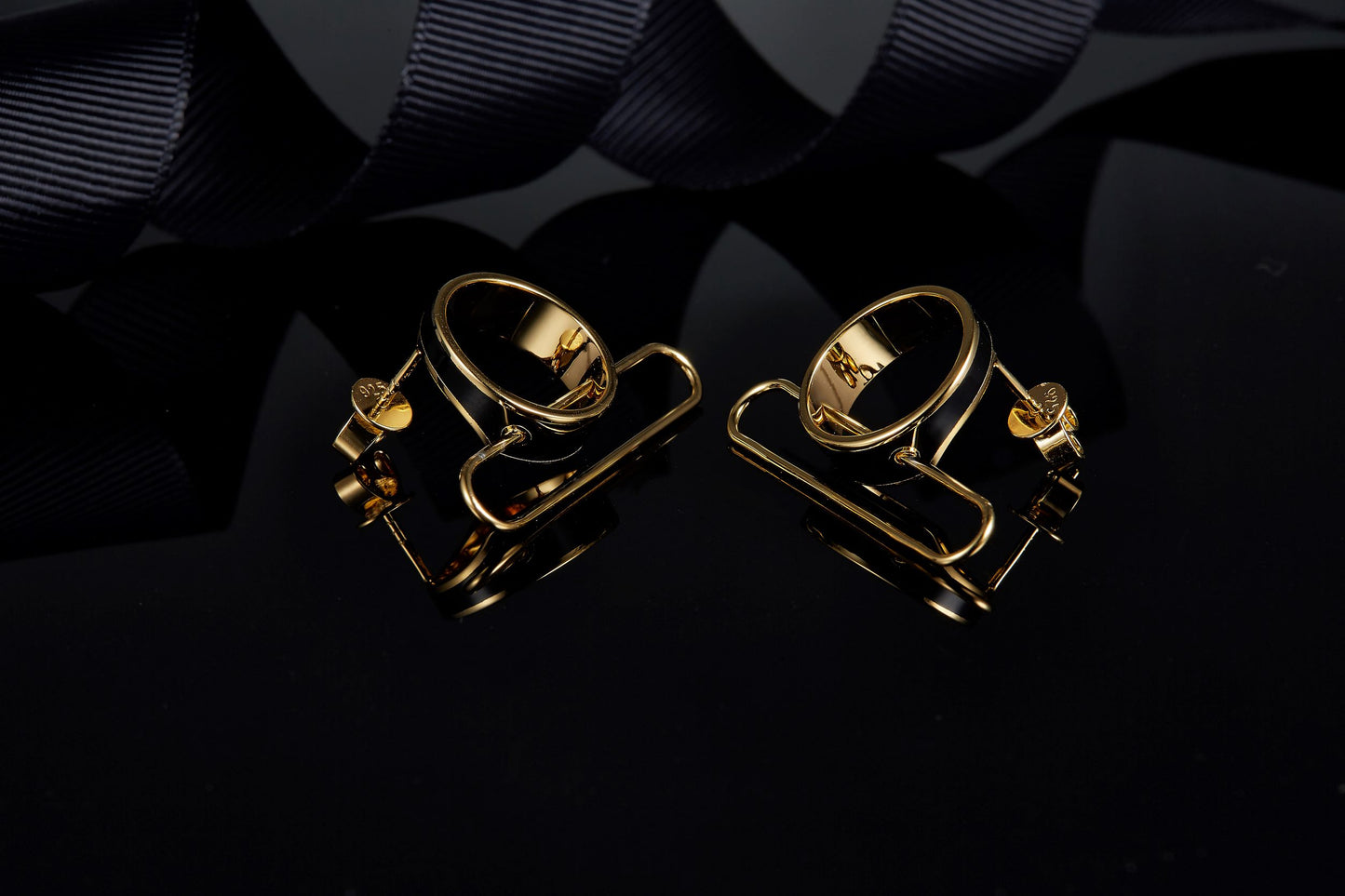 This earrings is an exquisite and elegant accessory, with a circular design, symbolizing perfection and timelessness. The craftsmanship of enamel colour allows it to present a variety of colours, And black colour represents mystery and nobility.