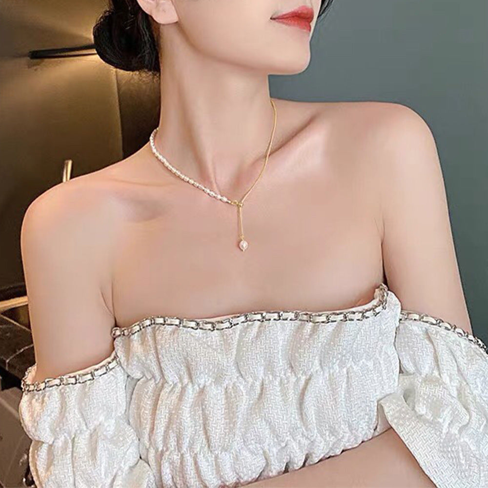 This Two Colours - Freshwater Pearls - Half Pearls Silver Collarbone Necklace for Women is the perfect addition to any wardrobe. Features a freshwater pearl penant, this unique piece crafted with half pearl, half silver chain design for a stunning finish. Wear it for a any occasion or everyday elegance.