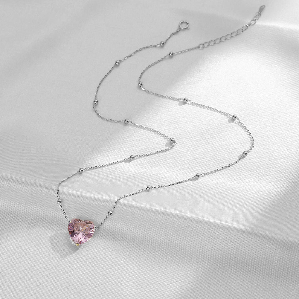 Barbie Pink Zircon Heart Pendants 925 Silver Collarbone Necklace for Women
