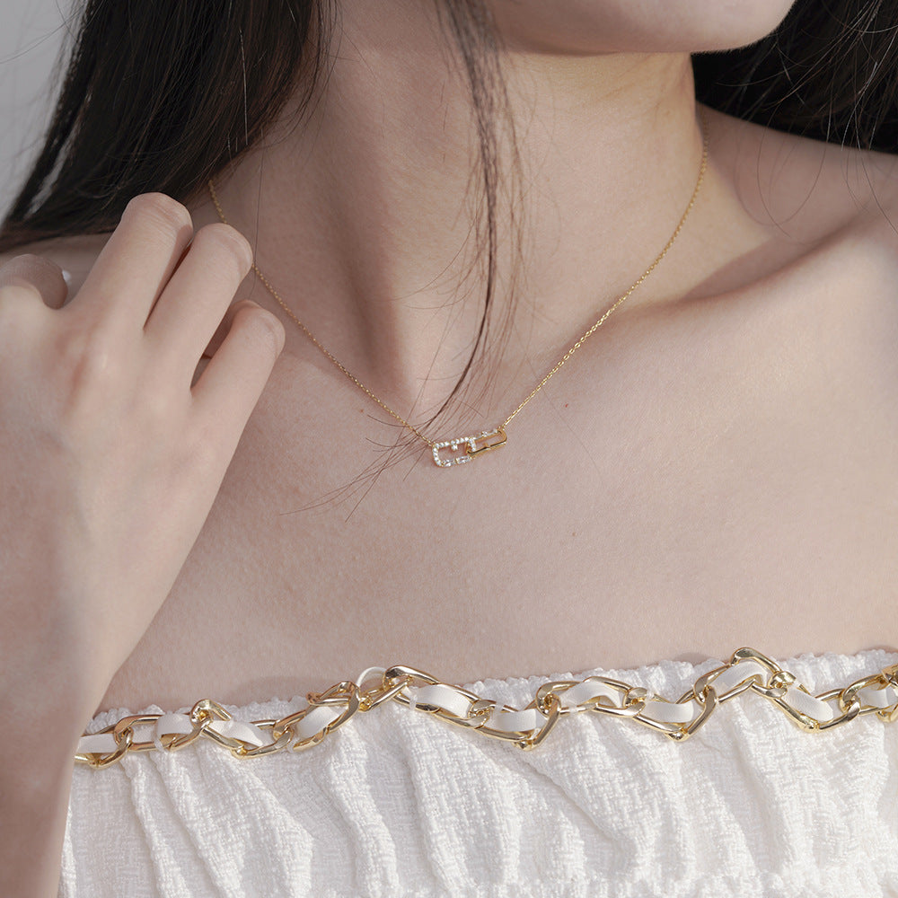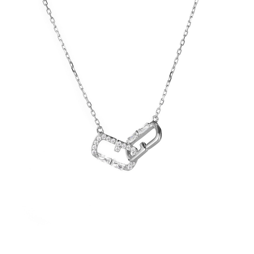 This stylish double Rectangle buckle pendant necklace is a luxurious addition to any woman's wardrobe. Expertly crafted with a white zircon and two hollow rectangle G buckle pendant, this charming necklace is perfect for making a statement.