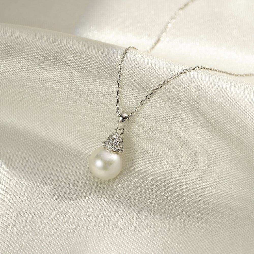 (Two Colours) White Zircon Natural Pearl Pendants Silver Collarbone Necklace for Women