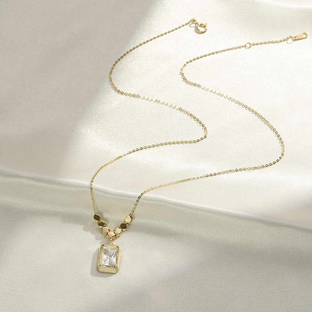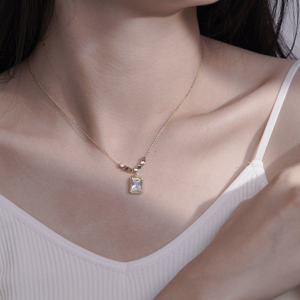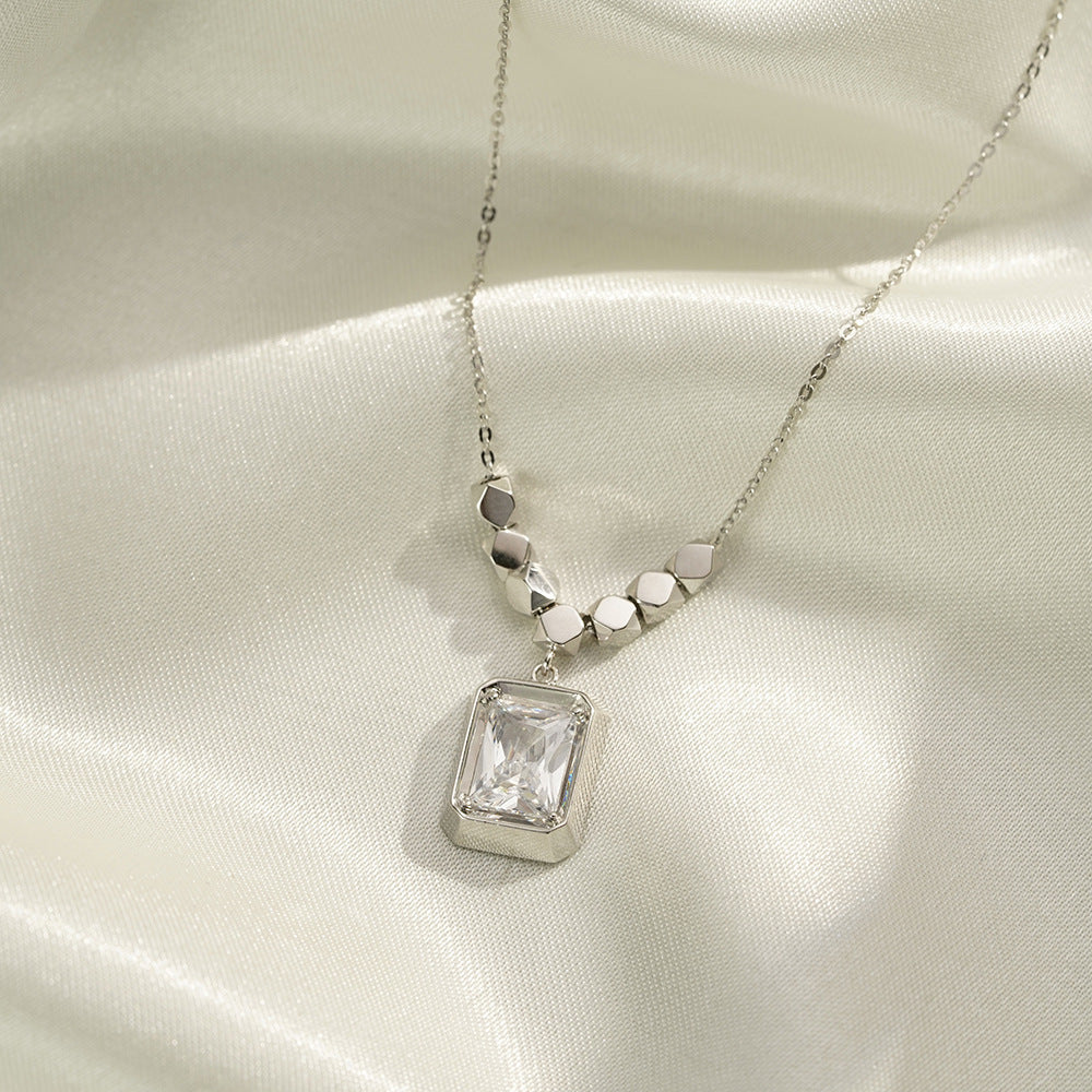 This beautiful White Zircon Rectangle Pendants Collarbone Necklace for Women adds a touch of elegance to any look. Featuring a dazzling rectangle Zircon pendant, this timeless piece is crafted with sterling silver and have two colours for choose. And decorated with small polygonal balls, it sure to make a stylish statement.