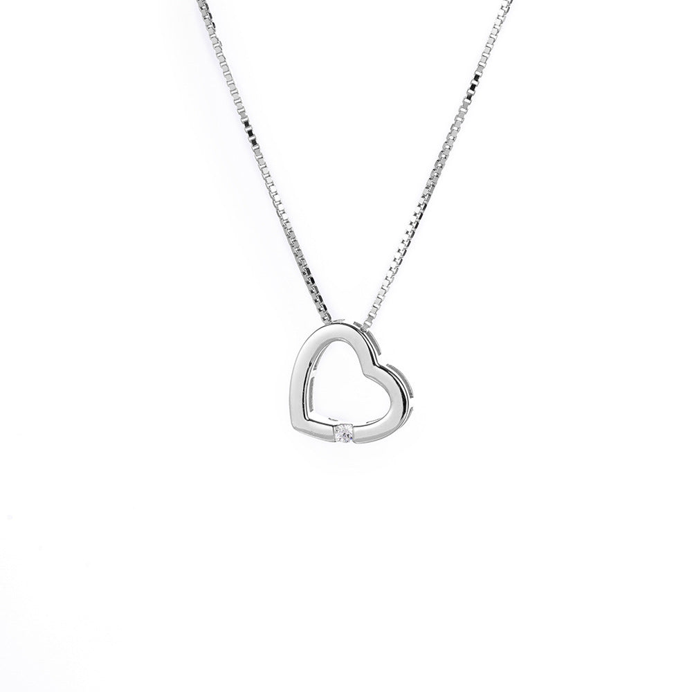 (Two Colours) White Zircon Simplicity Hollow Heart Pendants Collarbone Necklace for Women