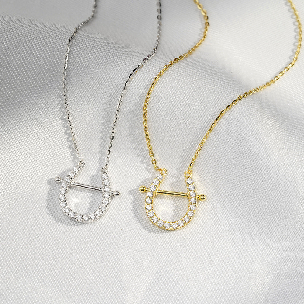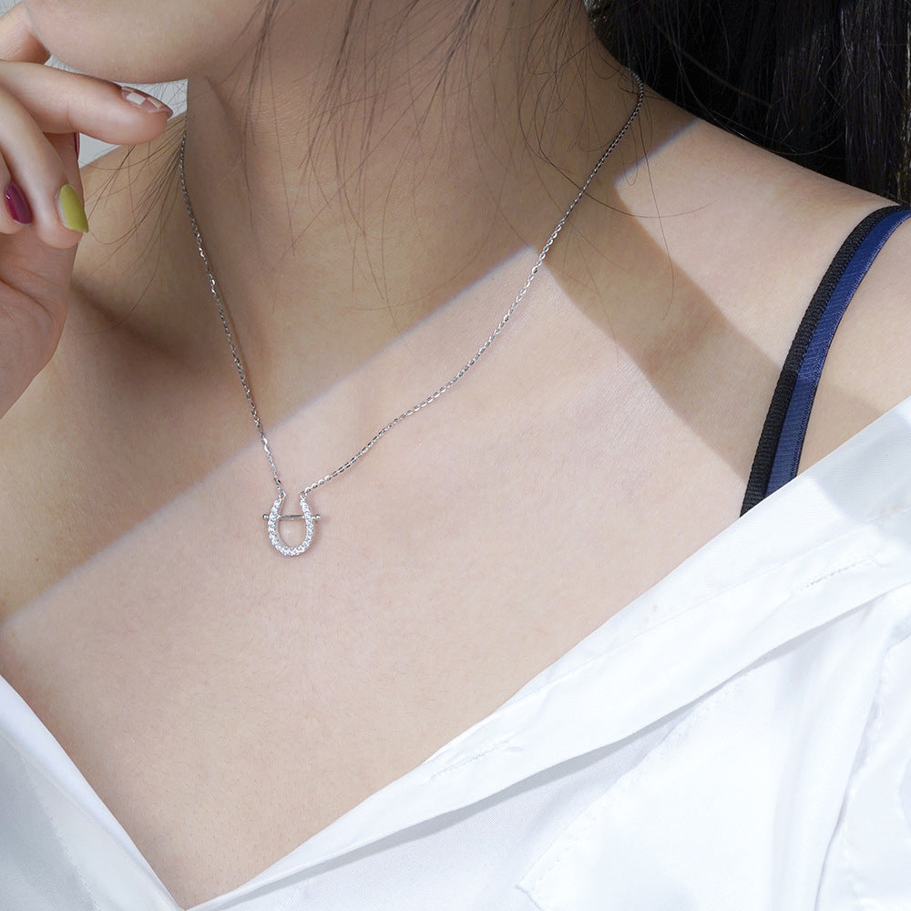 (Two Colours) White Zircon U-shaped Horseshoe Pendants Collarbone Necklace for Women