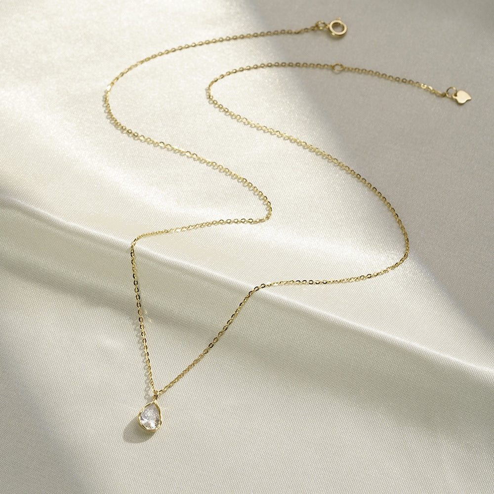 (Two Colours) White Zircon Water Drop Solitaire Pendants Collarbone Necklace for Women