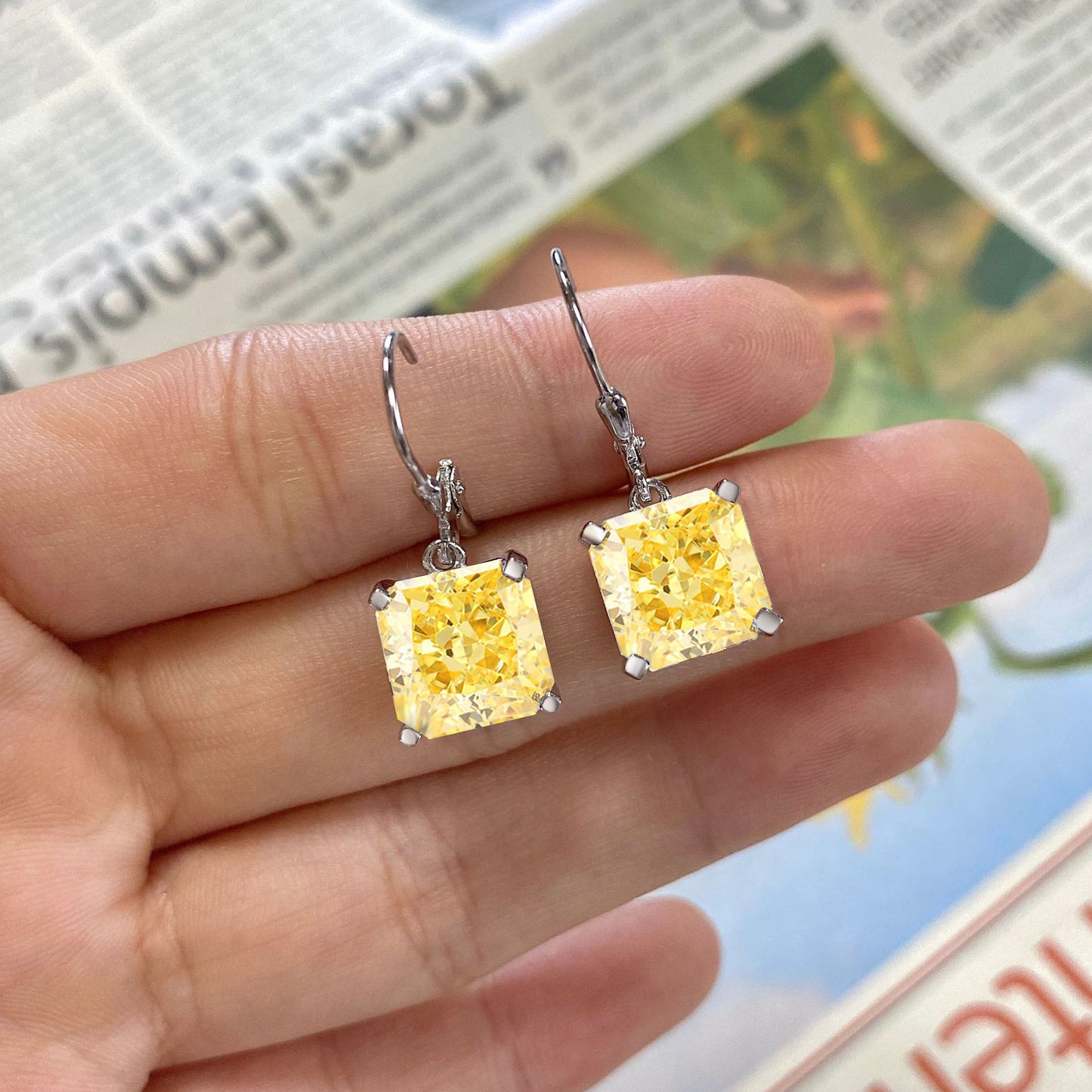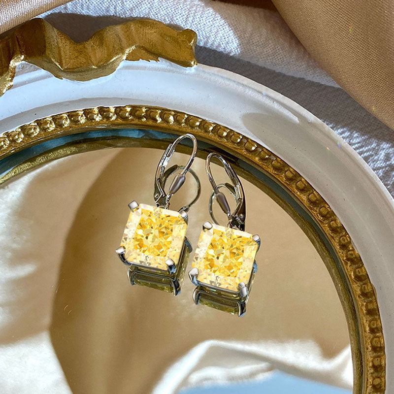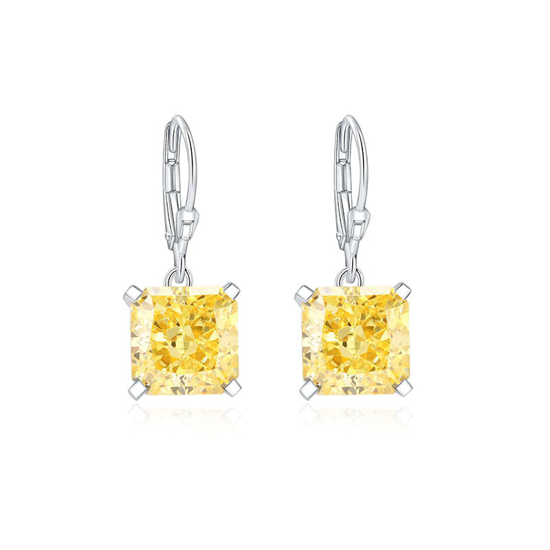 This earring is an an elegant and fashionable accessory that can exude unique charm in any occasion. Iits main stone being a shinny10*10mm Cushion Cut zircon with a diamond like luster and hardness.