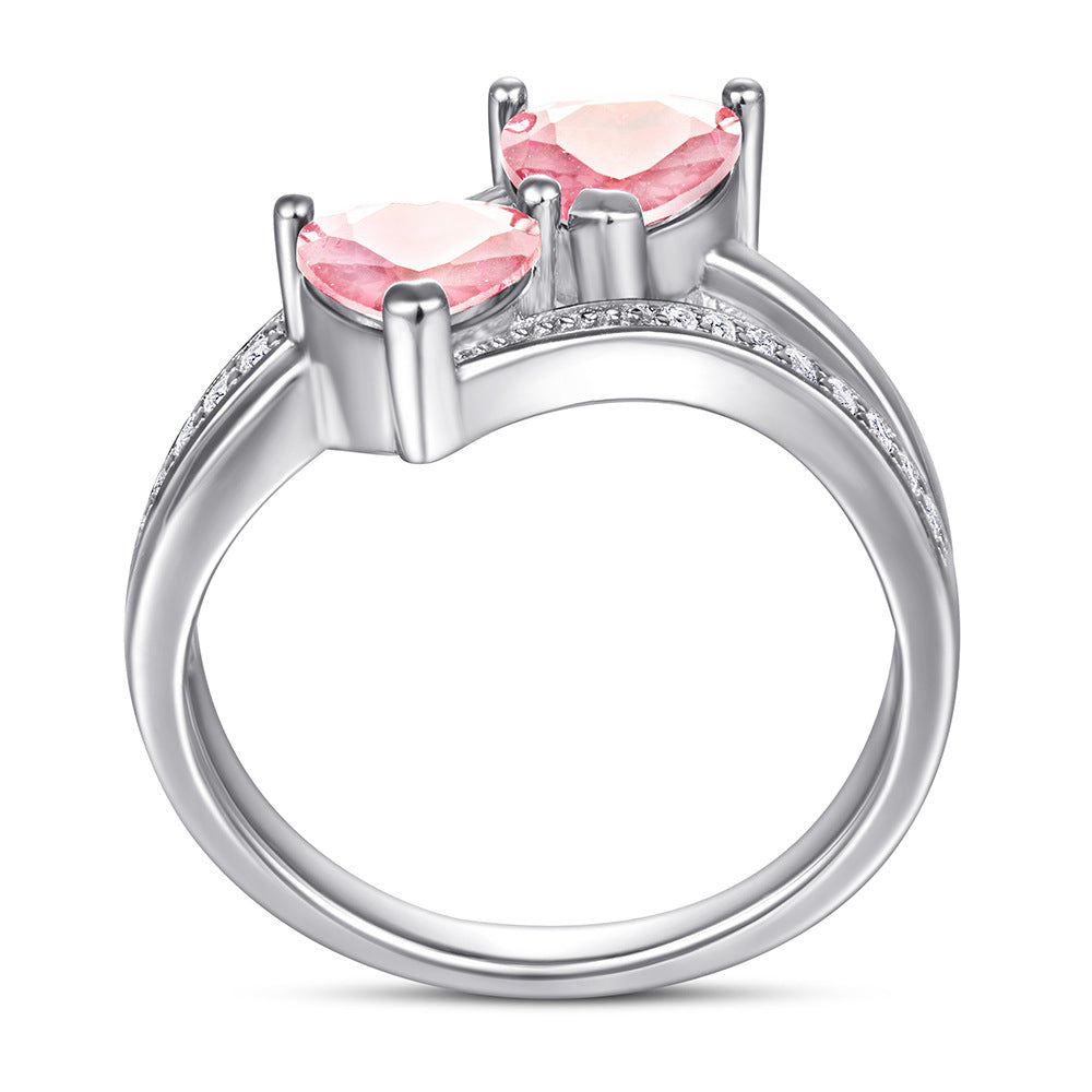 Colourful Two Heart Zircon Modern Split Shank Silver Ring for Women