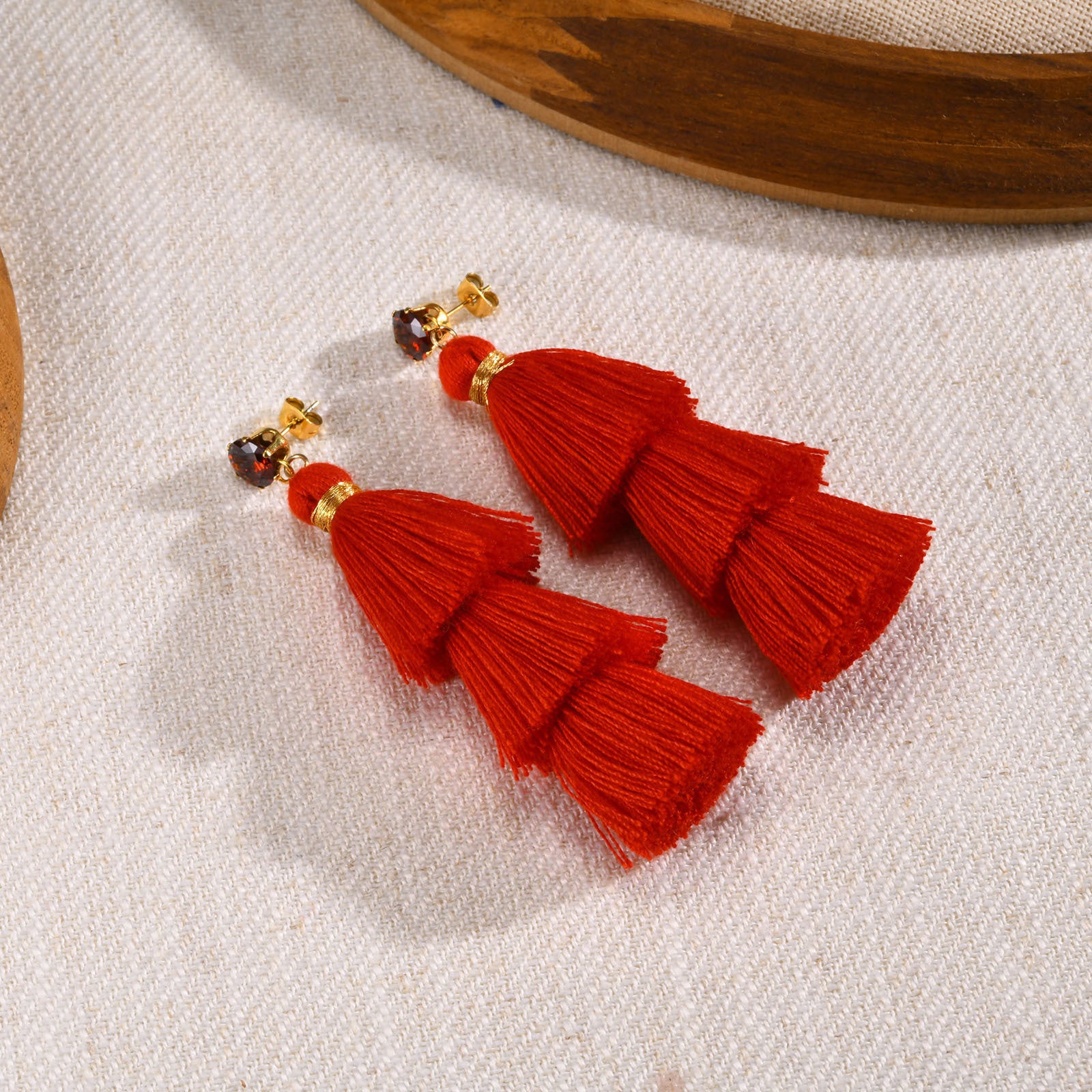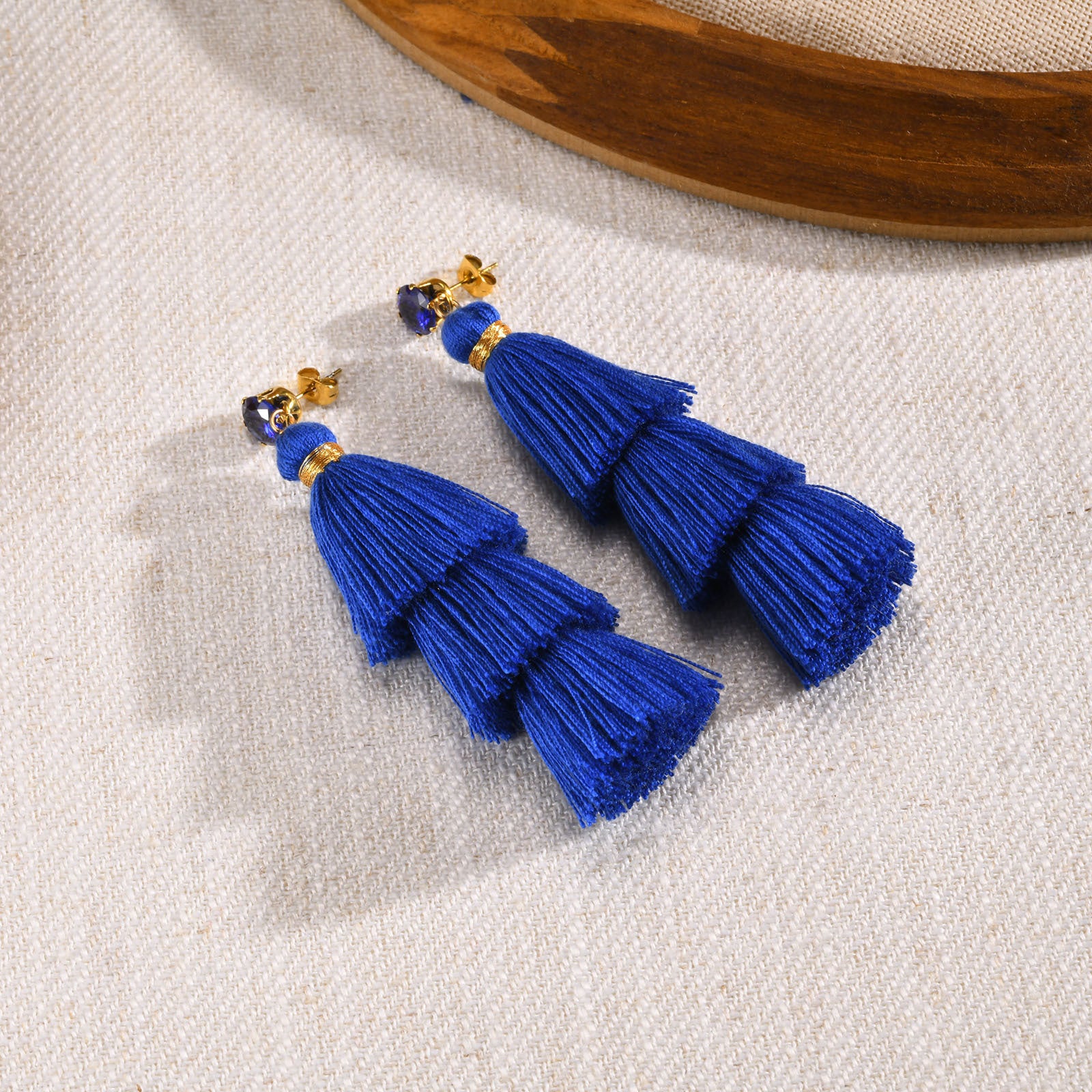 These Various Stainless Steel Pomegranate Zircon Blue Red Three-Color Fringed Earrings Women's are not just accessories; they are a reflection of your unique personality. Whether you're dressing up for a night out or adding a pop of color to your casual look, these earrings are the perfect choice. Their exquisite craftsmanship and attention to detail ensure you stand out effortlessly. Don't miss out on transforming your jewelry collection with this must-have pair!