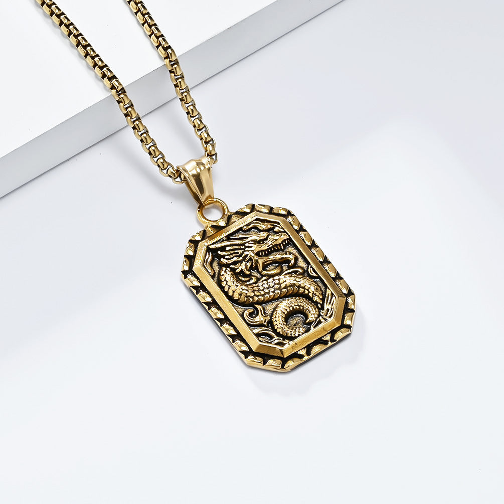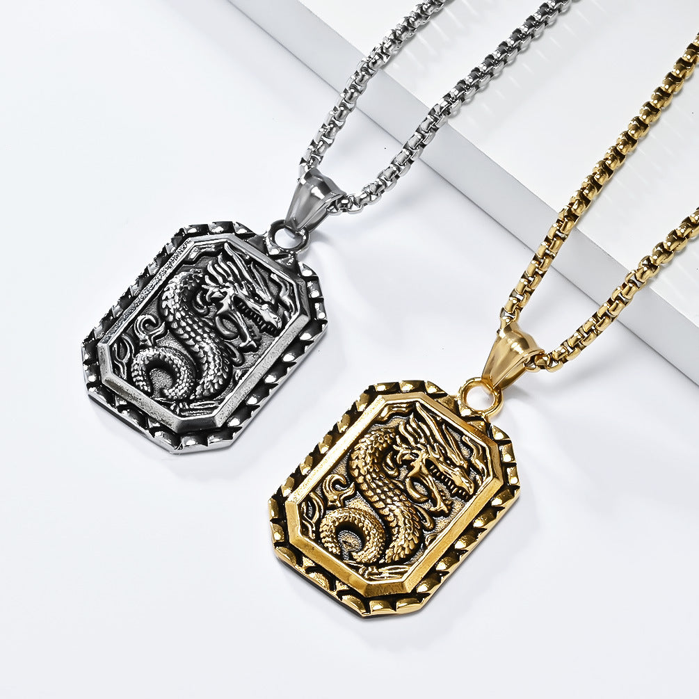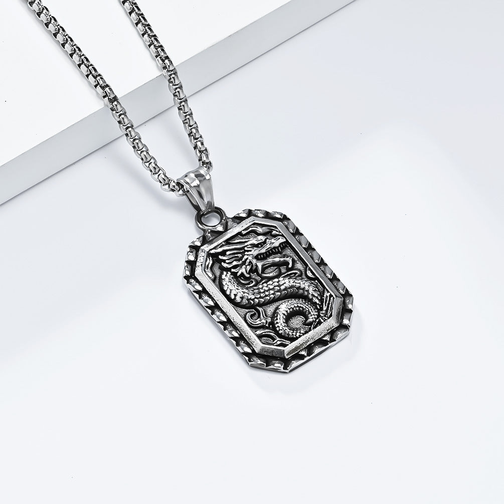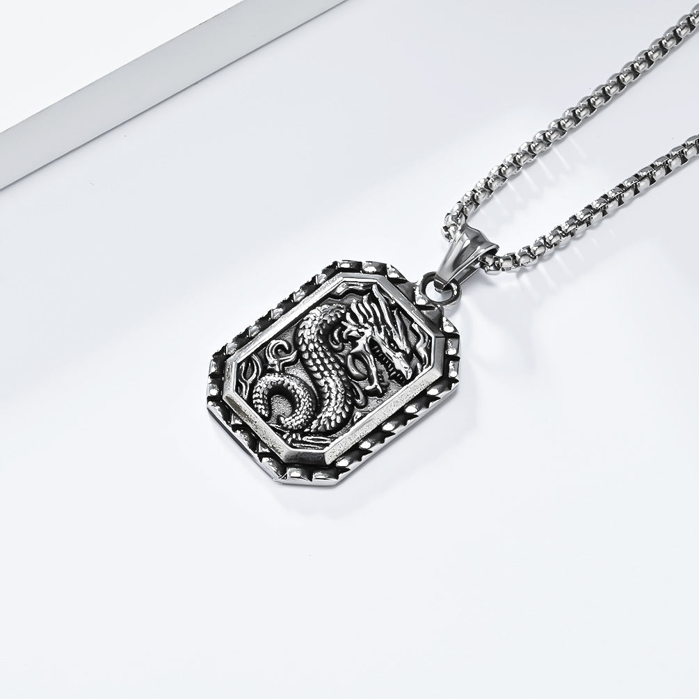 Vintage Chinese Dragon-Shaped Titanium Steel Necklace for Men