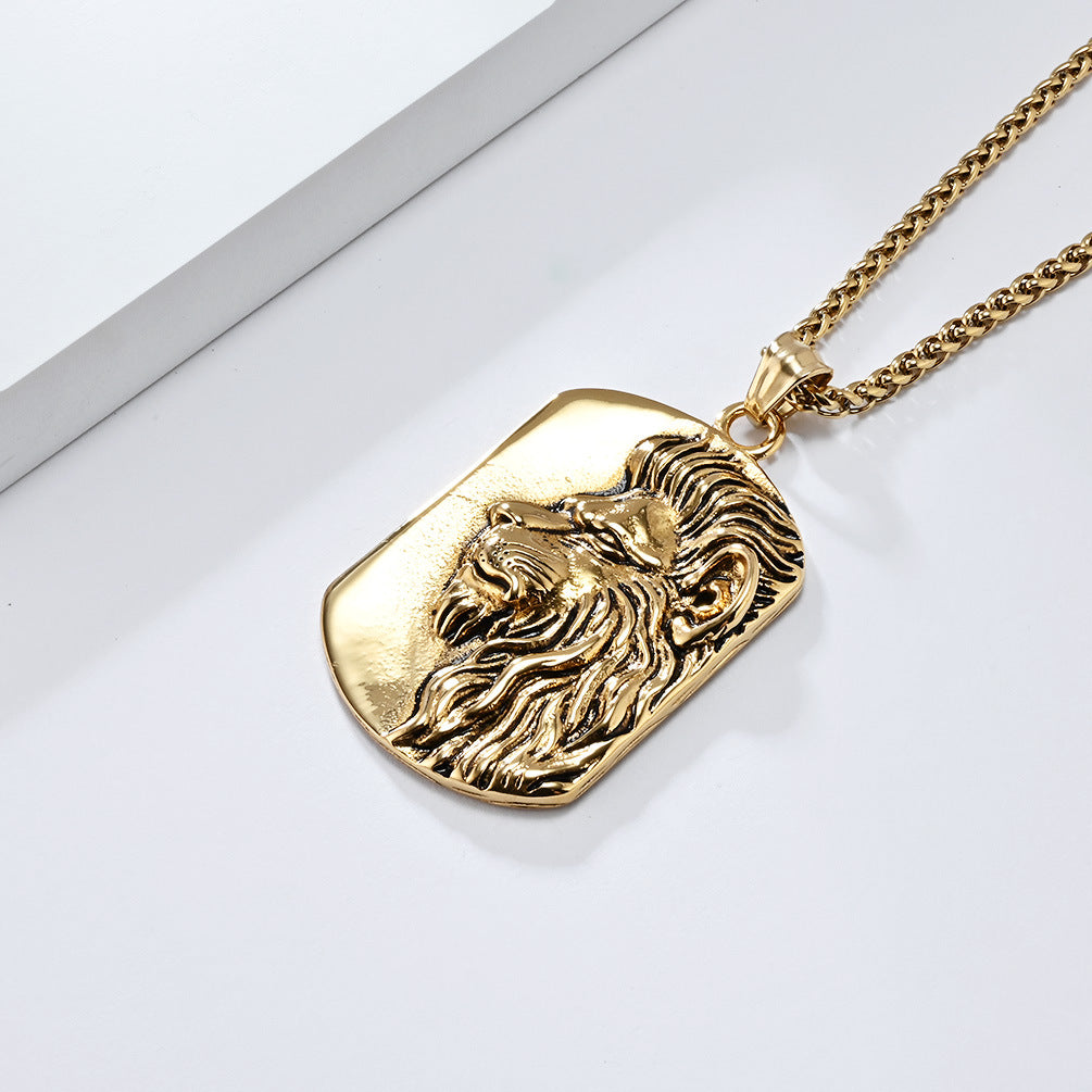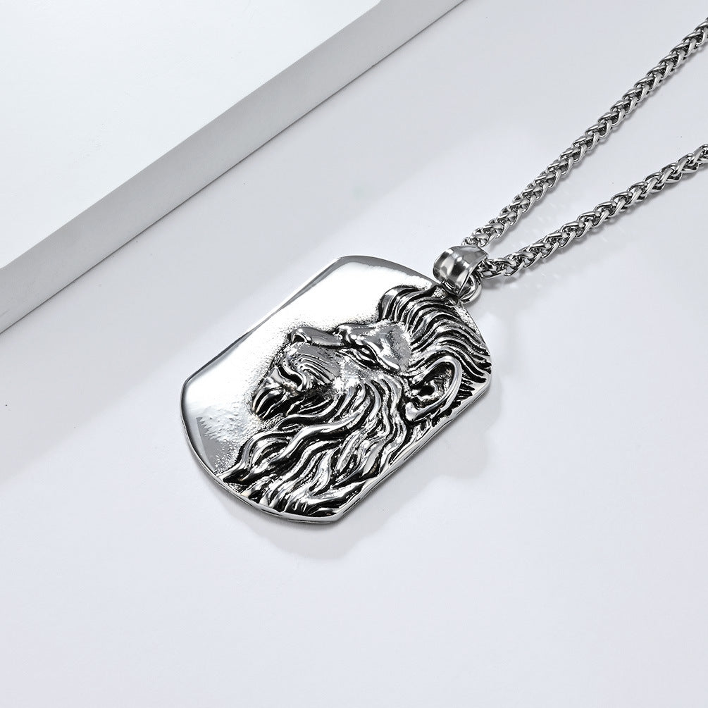 Introducing the Vintage lion head titanium steel military necklace men's personality fashion lion king domineering hip-hop sweater chain pendant for men, a bold accessory designed for the modern man who wants to make a statement. Crafted from high-quality titanium steel, this necklace combines durability with a striking design that is sure to turn heads and elevate any outfit. The lion head pendant symbolizes strength and leadership, embodying the essence of the lion king, making it a perfect gift for those who possess an adventurous spirit and a dynamic personality.