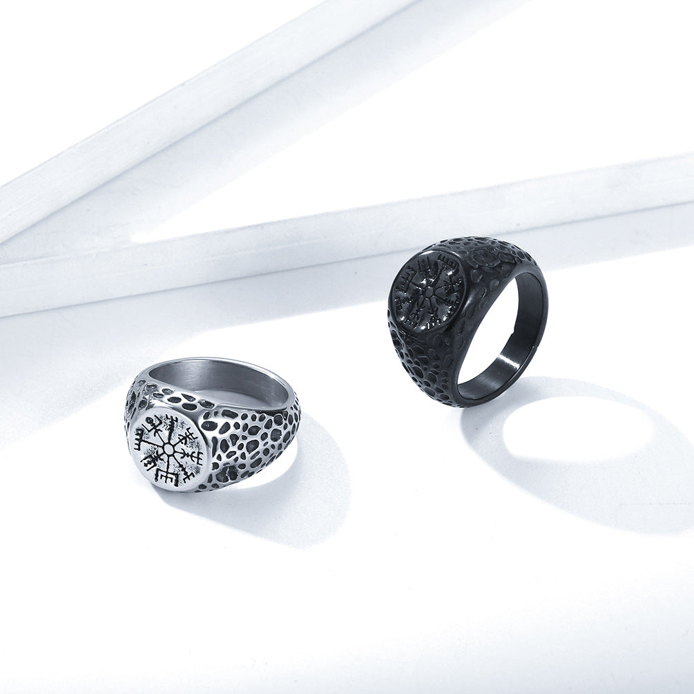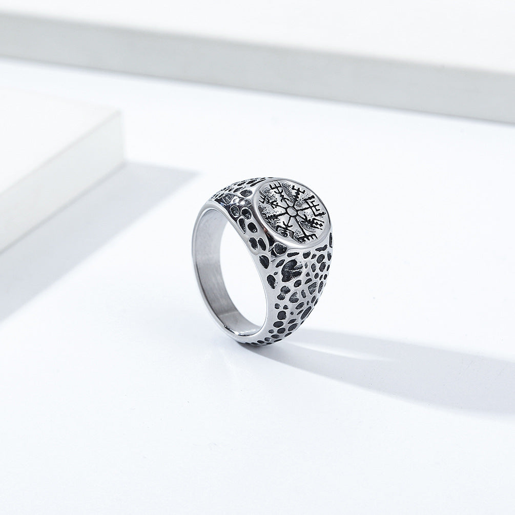 Vintage Nordic Viking Compass Stainless Steel Ring for Men