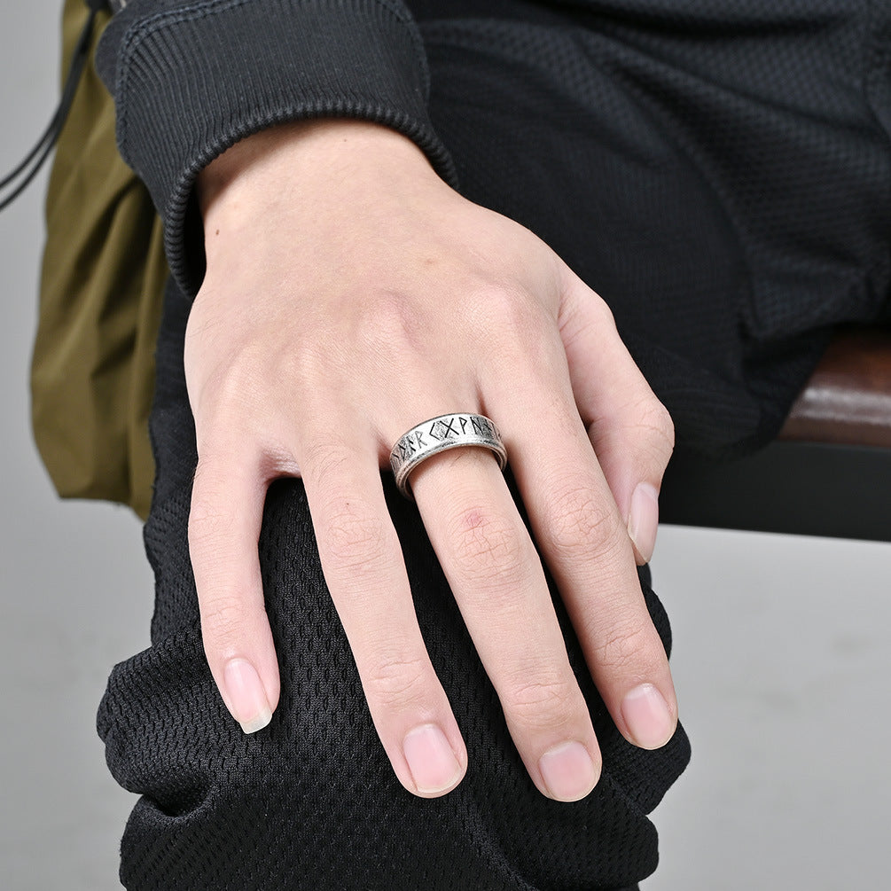 Elevate your hand jewelry game with the Vintage Nordic Viking Luhn text titanium steel men's ring ring, cold neutral style wear hand jewelry for men. Experience the fusion of style and tradition that will undoubtedly make a statement.
