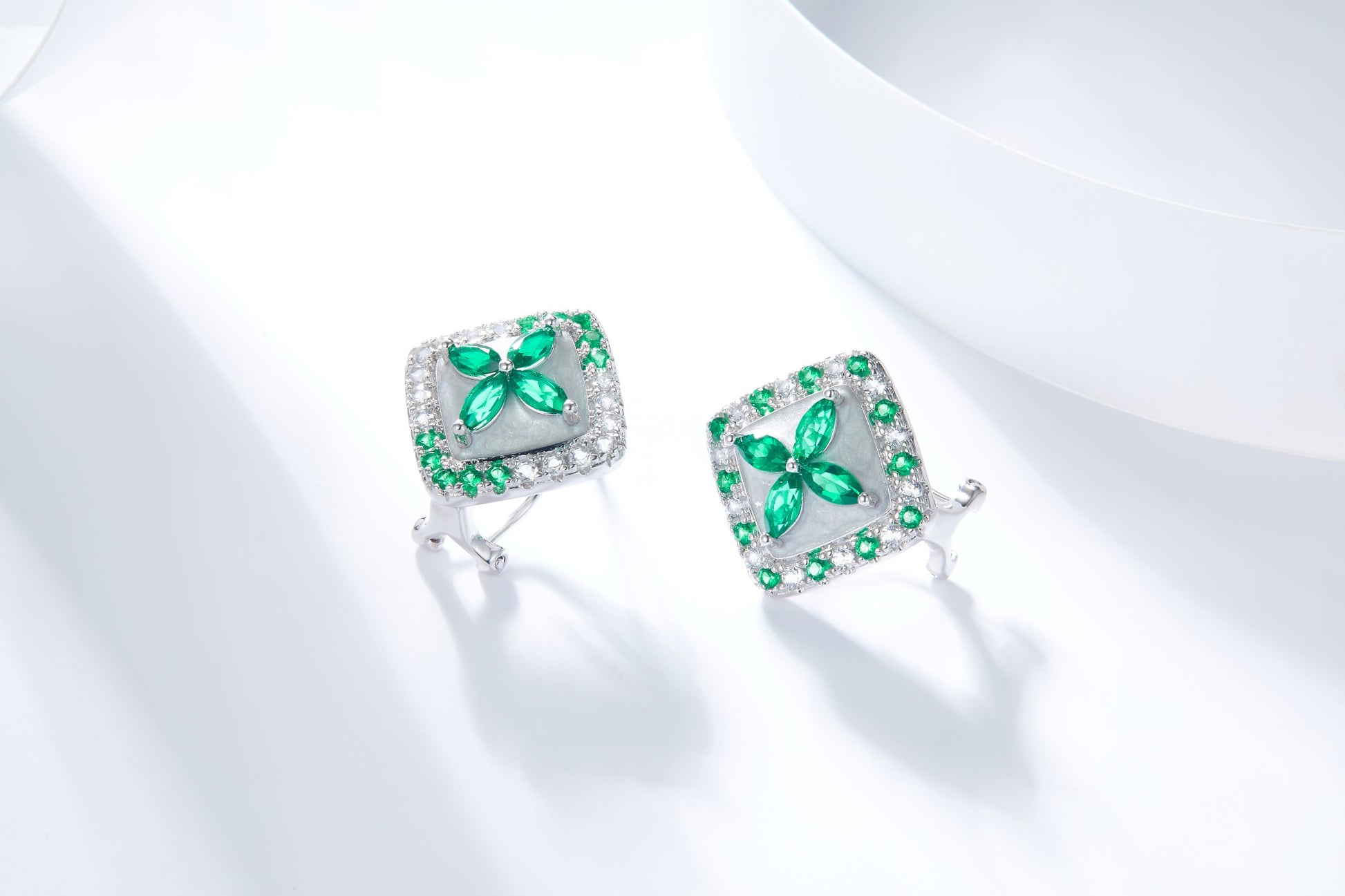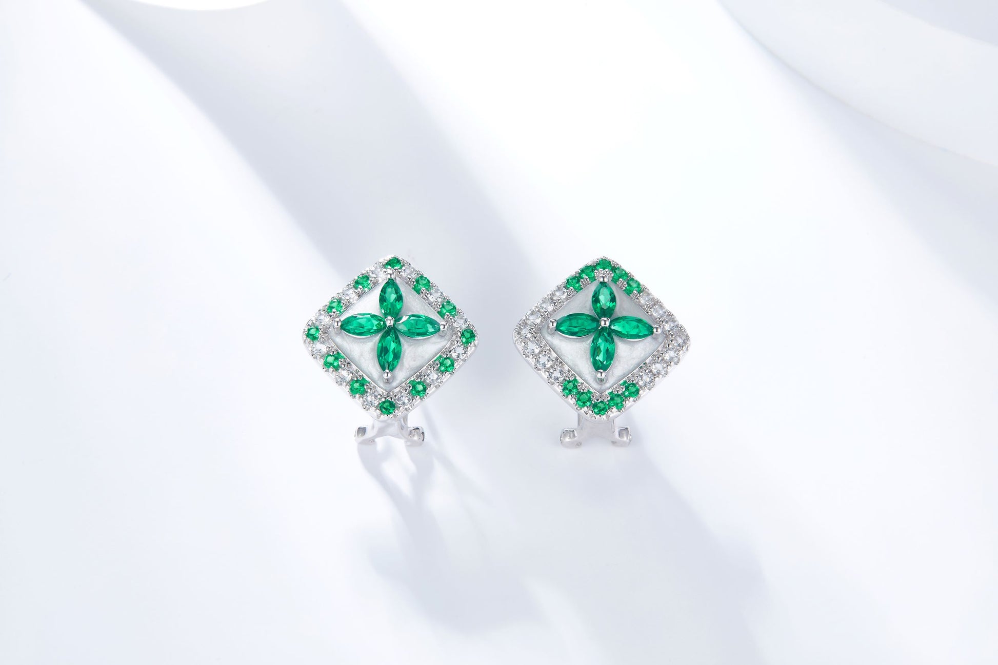 Our Green and White Topaz Cross Square Enamel Silver Stud Earrings is the perfect piece of jewelry for any outfit. Featuring a classic square design with green four-leaf grass topaz, these earrings exude elegance and sophistication. Crafted from sterling silver and enamel, this earrings is sure to add a touch of elegance to any outfit.