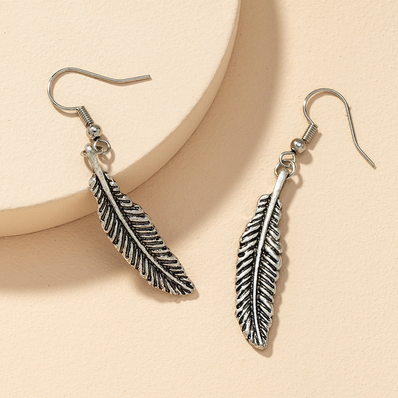 Vintage Feather Alloy Earrings - Vienna Verve Collection