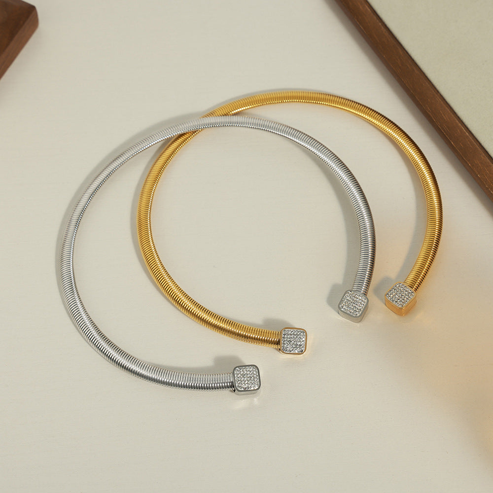 Fashionable Minimalist Blade Collar Necklace with Gold-Plated Zircon Insets