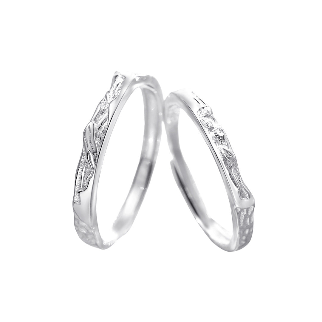 Planderful Trendy Couple Ring S925 Sterling Silver Adjustable Open Band For Him And Her Gift