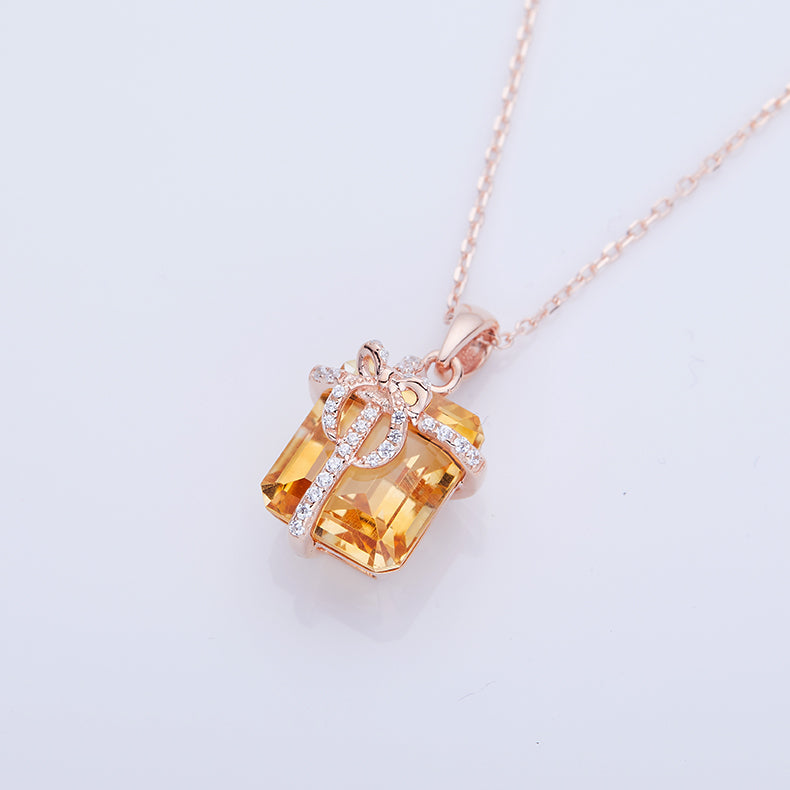 This Yellow Crystal Gift Box pendant will add the perfect finishing touch to any outfit. Made with sterling sliver plated in luxurious Rose Gold Colour, it is sure to turn heads. Sparkling Yellow Crystals add a touch of clarity and elegance to make you look as dazzling as the piece itself.