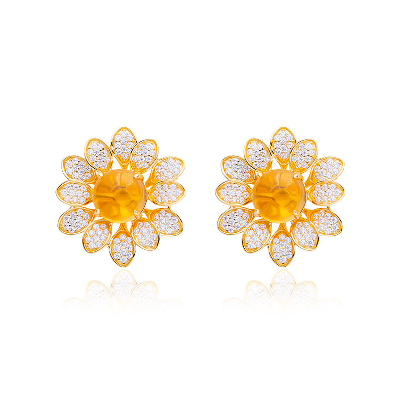This radiant Flower Shape Round Yellow Crystal Stud Earrings provide timeless elegance for all occasions. The perfect blend of classic and modern fashion, this earrings feature a stunning flower with a round Yellow Crystal stones in the center and plated in gold. It's a beautiful addition to any jewelry collection.