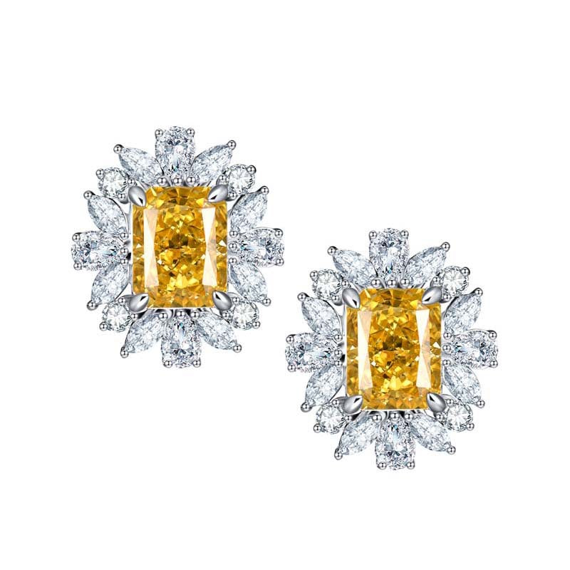 This luxurious sterling silver stud earrings feature a 7*9mm rectangle yellow zircon surrounded by zircon petals. The high quality materials and intricate craftsmanship make this earrings a great accessory for any outfit.