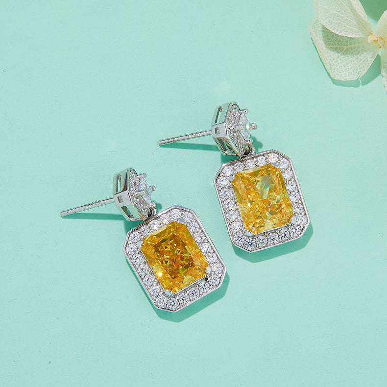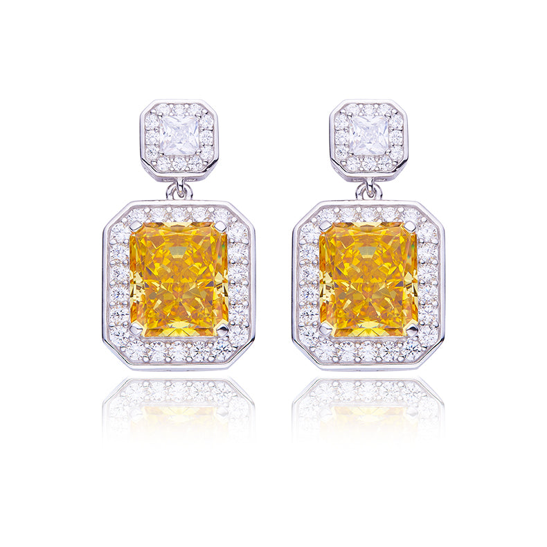 13.5Carat Rectangle Yellow Zircon Halo Drop Earrings
