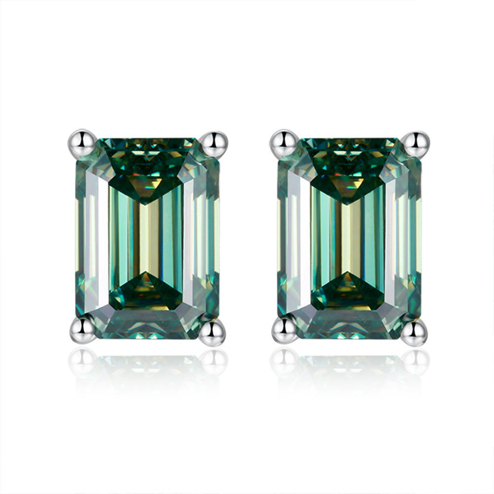 Solitaire 1.0 Carat Emerald Cut Moissanite Silver Stud Earrings