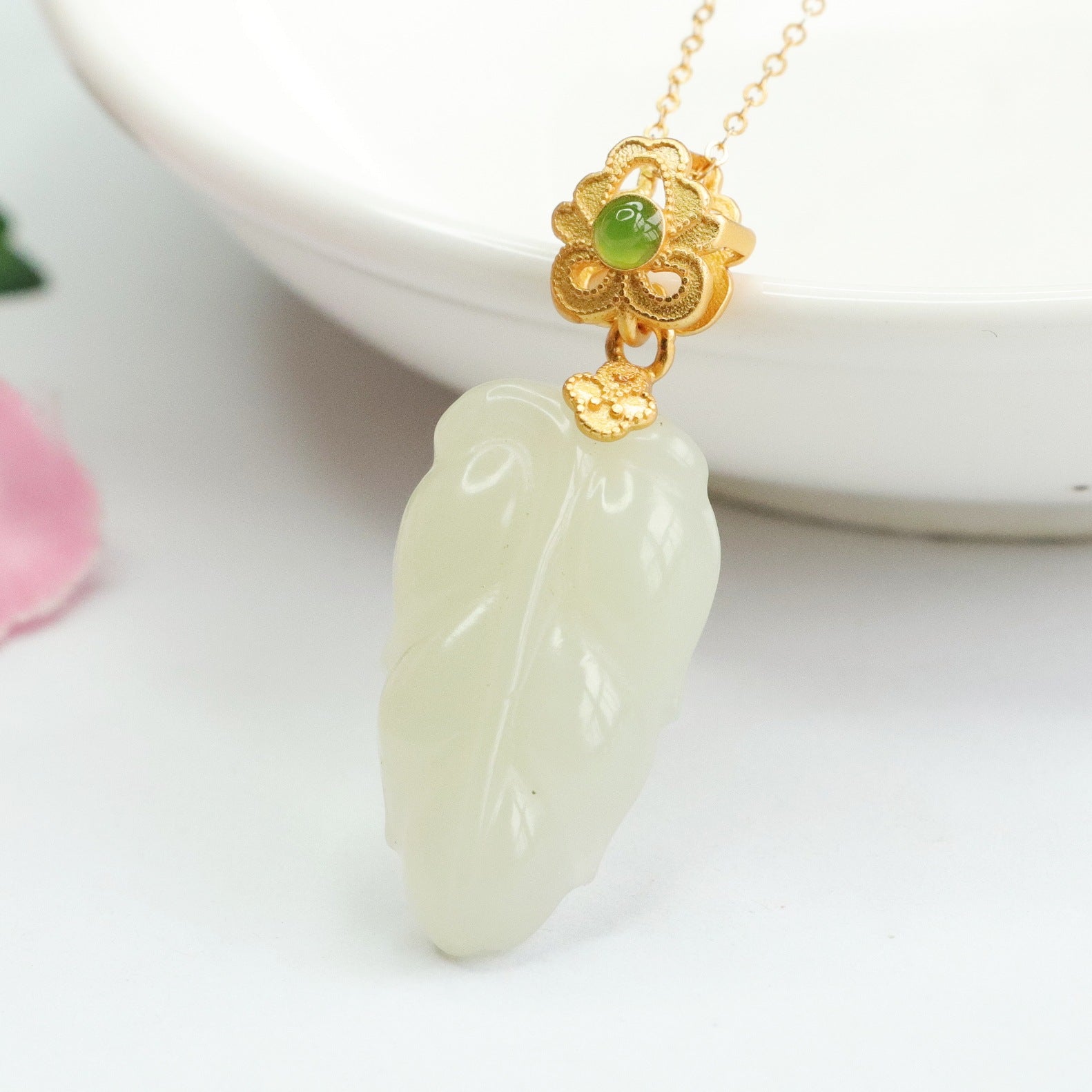 The combination of sterling silver and natural Hetian jade creates a stunning contrast, adding a touch of luxury to your look. The intricate leaf design of the pendant showcases fine craftsmanship and attention to detail.