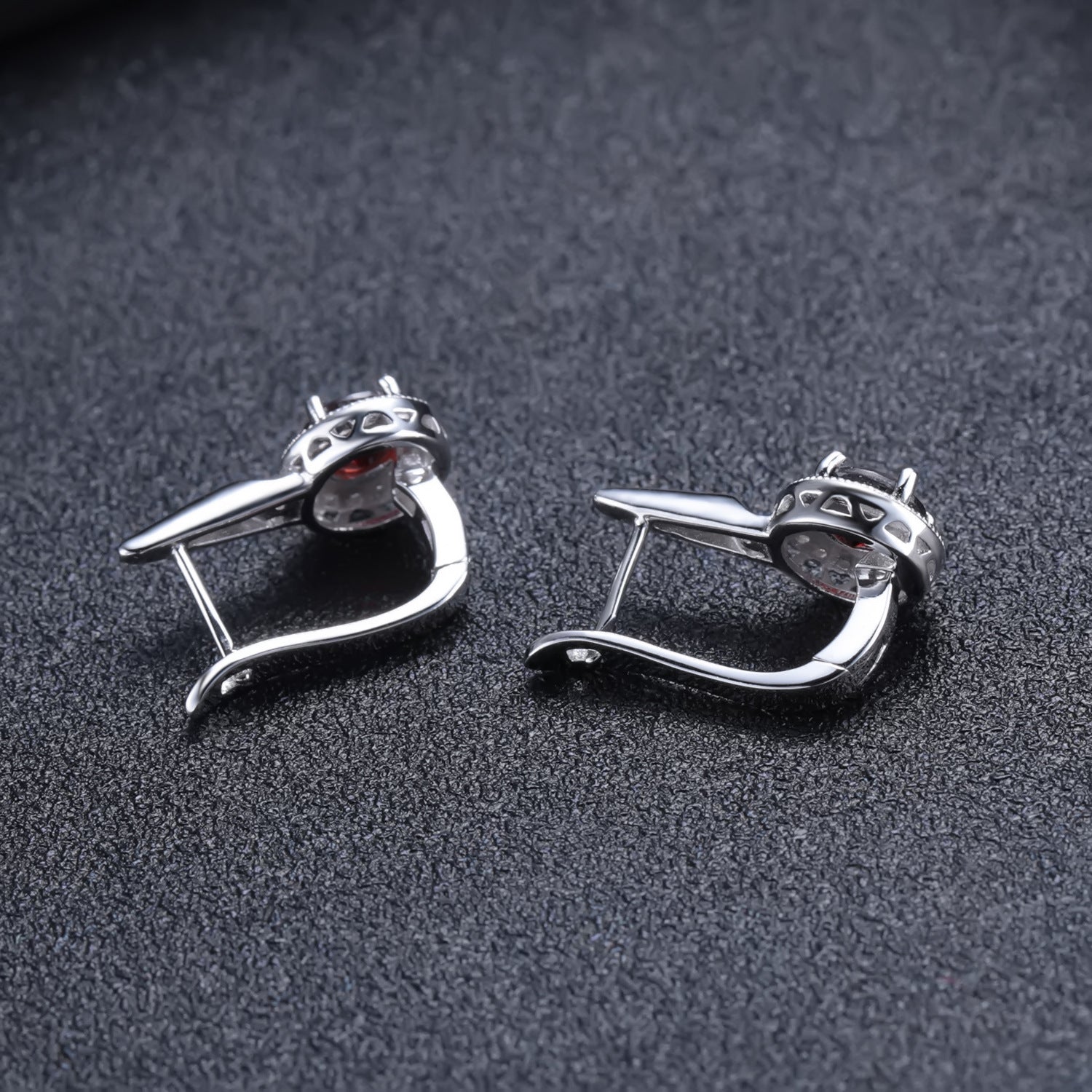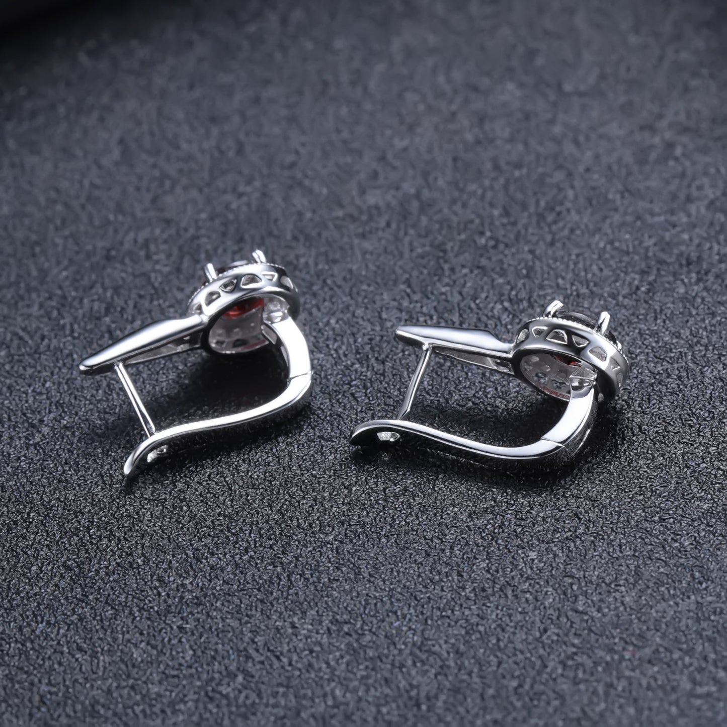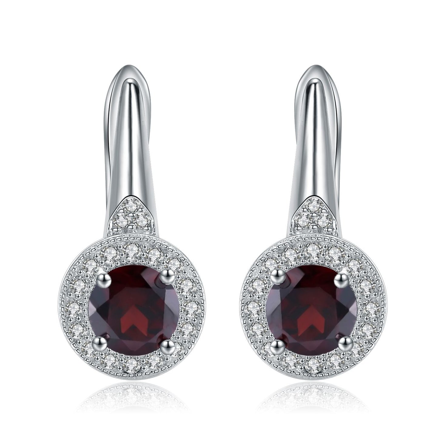 This European Vintage Style Earrings feature an Round Cut Natural Garnet Soleste Halo and sterling silver, making them the perfect choice for those who appreciate timeless fashion. In addition to their aesthetic appeal, they are also lightweight and comfortable to wear.