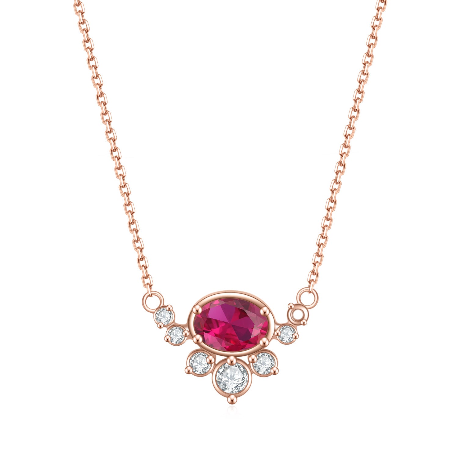 Red Corundum Pendant Plated Rose Gold Silver Necklace for Women