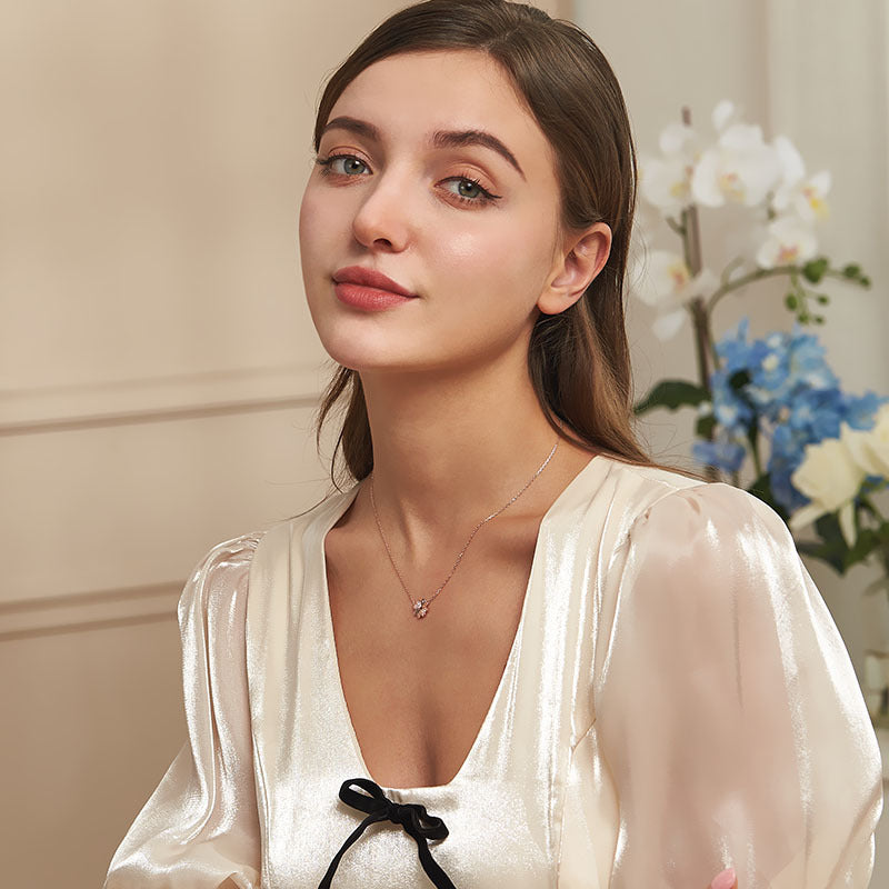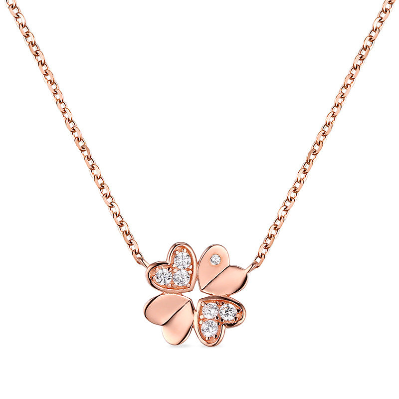 This beautiful necklace features a unique clover pendant with four heart-shape leaves, and set with sparkling zircon stones. Crafted from sterling silver, it's sure to be an eye-catching addition to any outfit.