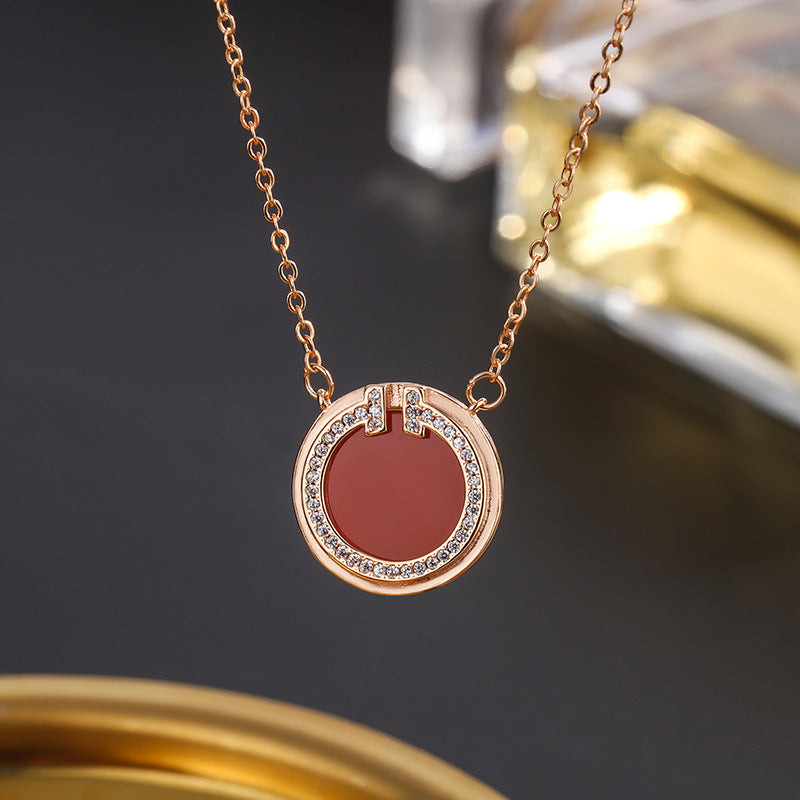 Roman Circle with Zircon Pendant Silver Necklace for Women
