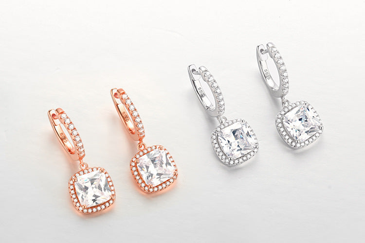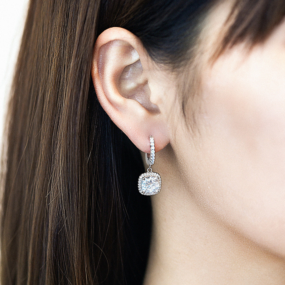 Square Zircon Soleste Halo Pendant Silver Hoop Earrings for Women