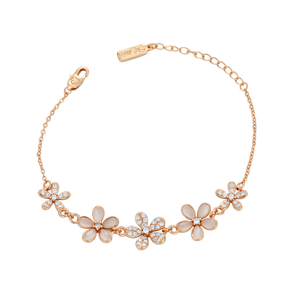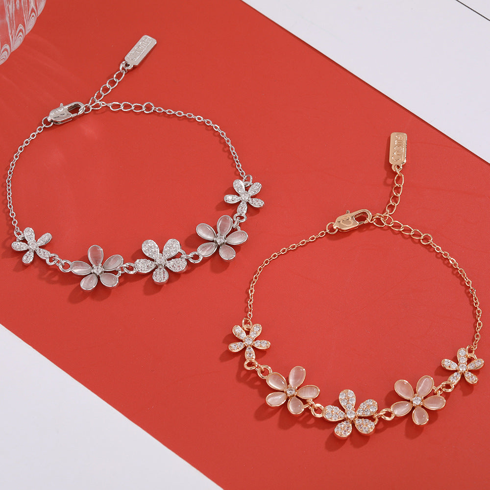 Zircon and Mother of Pearl Flower Silver Bracelet for Women