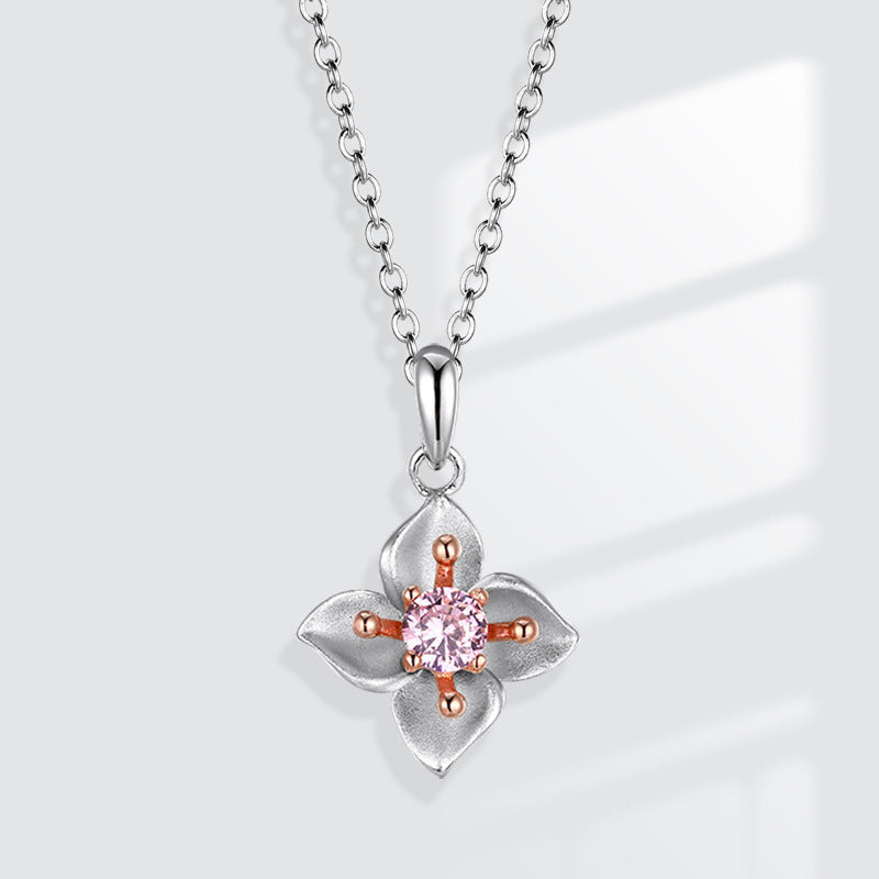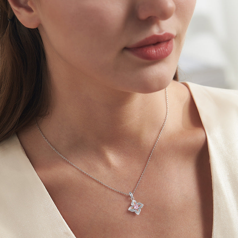 Plum Blossom with Pink Zircon Silver Necklace for Women