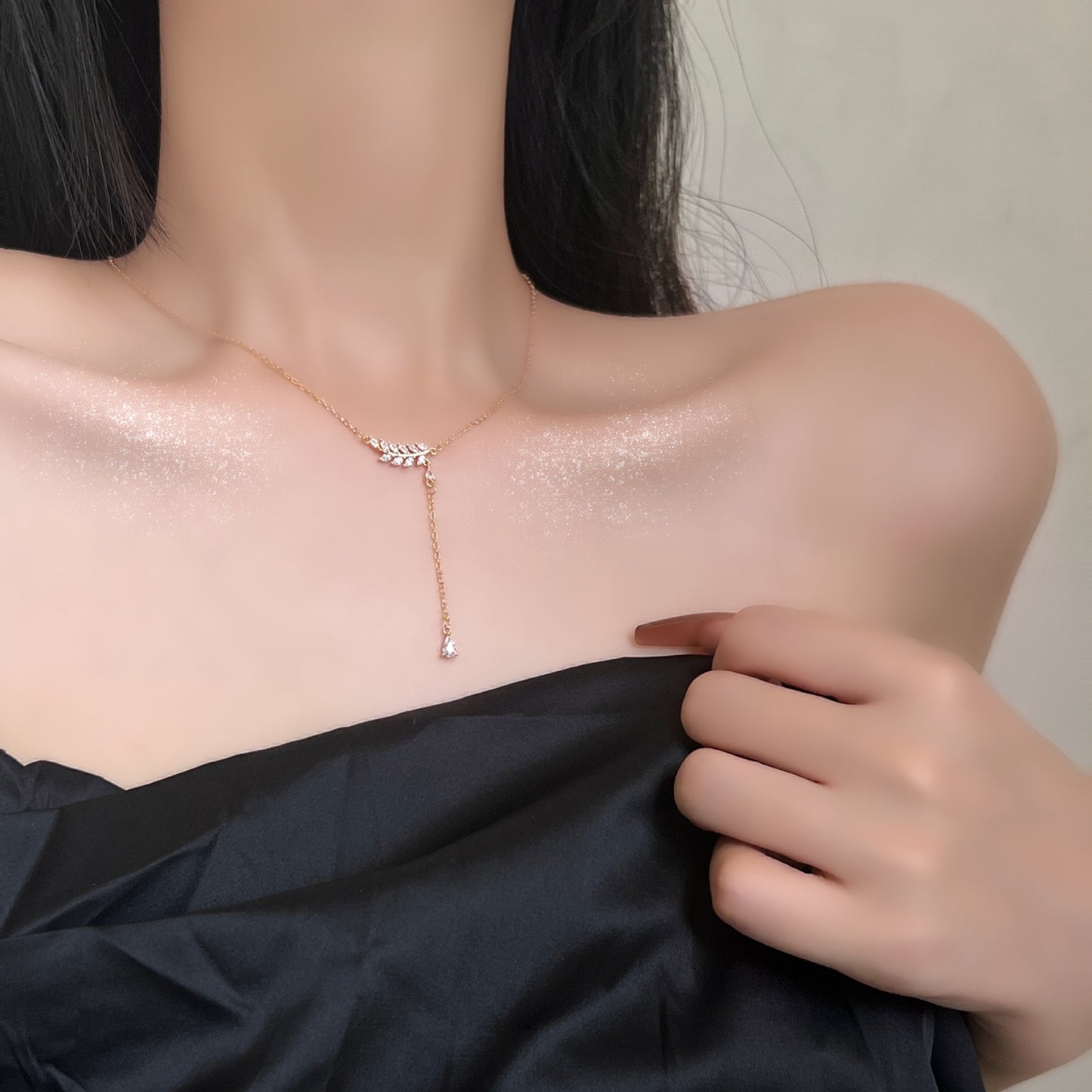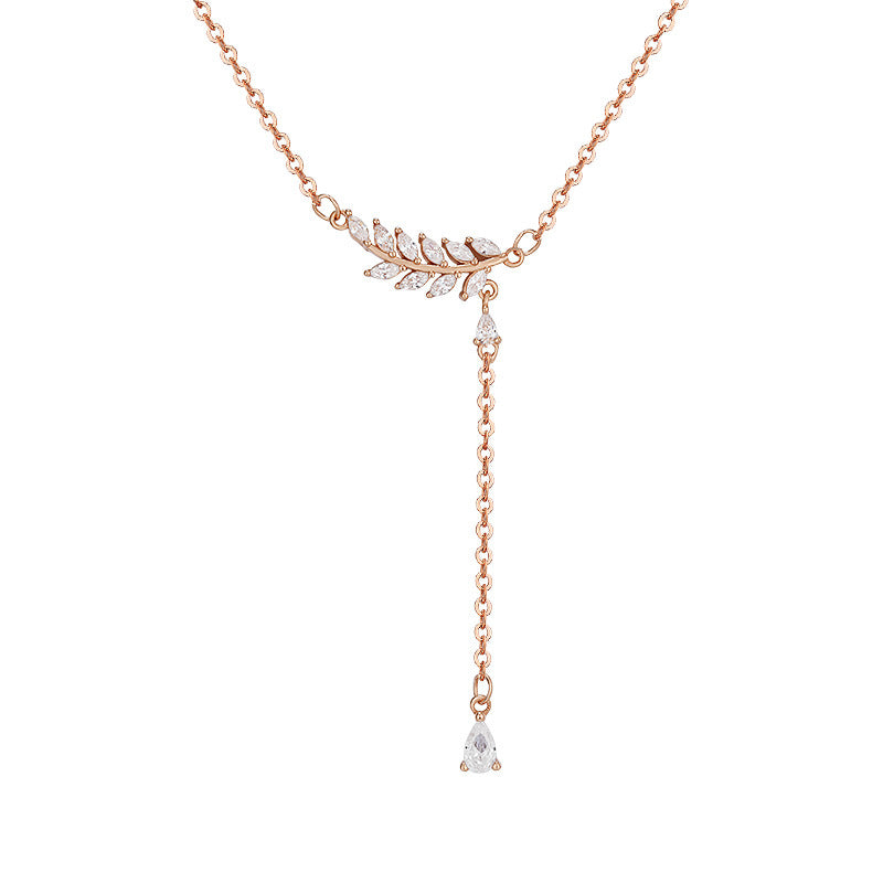 Leaf with Marquise Zircon Tassels Silver Necklace for Women
